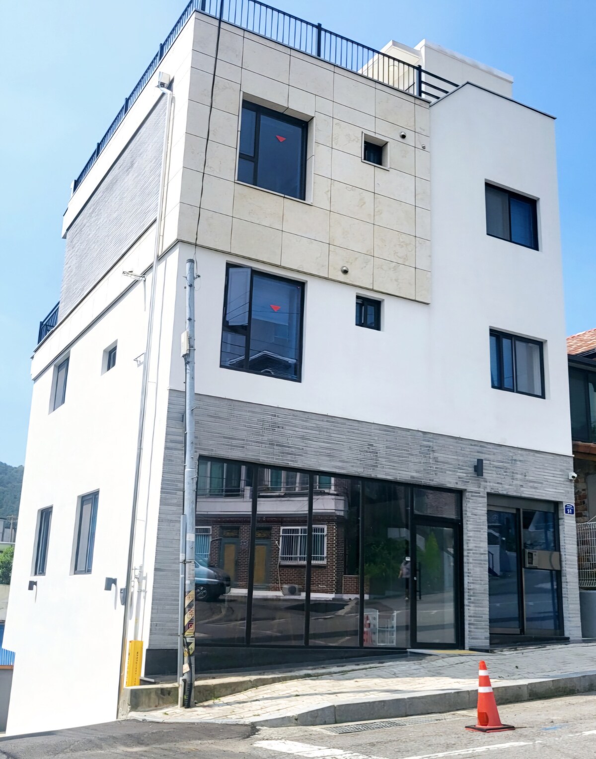 바다를 바라보며 가족,친구들이 아늑하고 행복한 시간을 보낼 수 있는 깨끗하고 넓은 숙소입니다. [숙소 구조 설명] 숙소는 엘리베이터가 있는 건물 3층에 위치하고 있으며 퀸사이즈 침대가 있는 침대방 2개, 퀸사이즈 침구세트가 준비되어 있는 온돌방 1개가 있습니다. 욕실은 총 2개가 있으며 1개는 3층에 다른 1개는 복층 계단을 올라가면 있습니다. 루프탑까지는 내부계단으로 이동하고 다락방을 지나면 멋진 바다를 볼 수 있는 루프탑이 나옵니다.