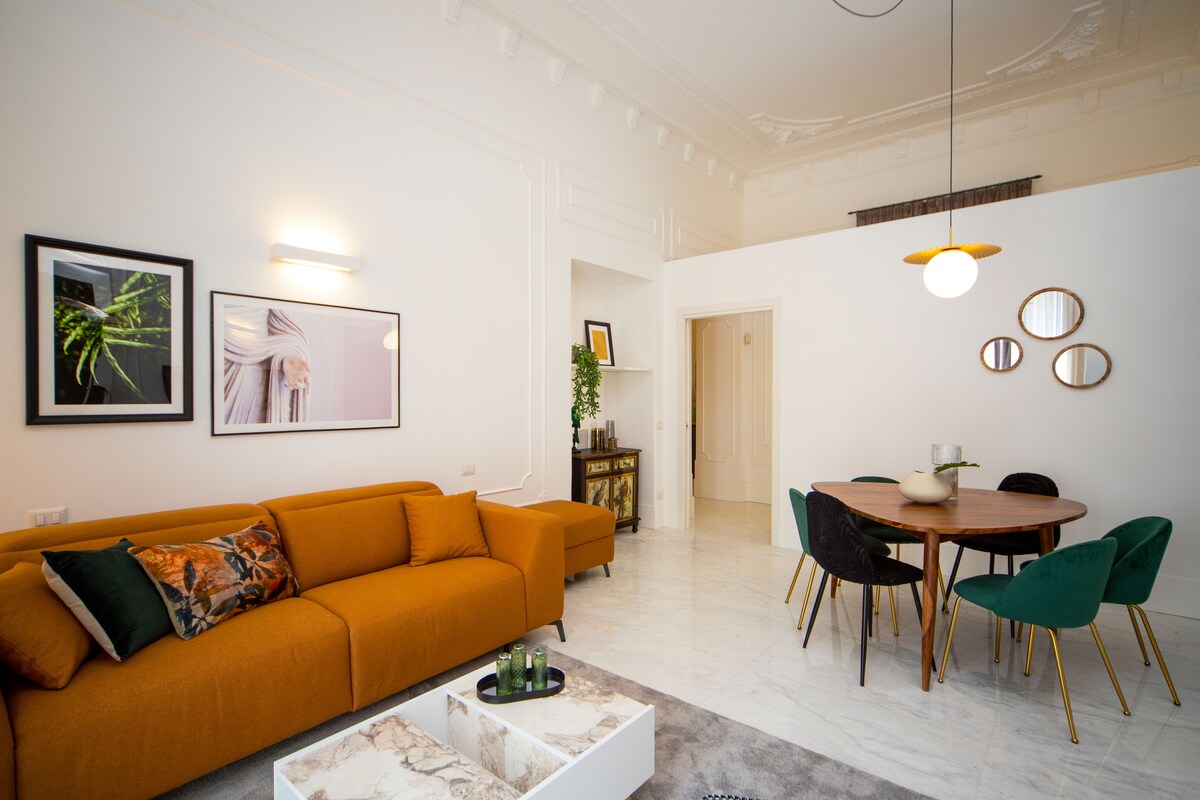 Le Petit Bouganville in the heart of the historical center of Salerno is a luxury guesthouse equipped with every comfort. The apartment is ideal for 2 people but it can accommodate up to 4. It has a bedroom and a living room with sofa bed. The kitchen is equipped with everything: dishwasher, fridge with freezer, oven, coffee machine, washing machine. Underfloor heating and chandeliers with ventilation blades. Smart TV. High speed WiFi.