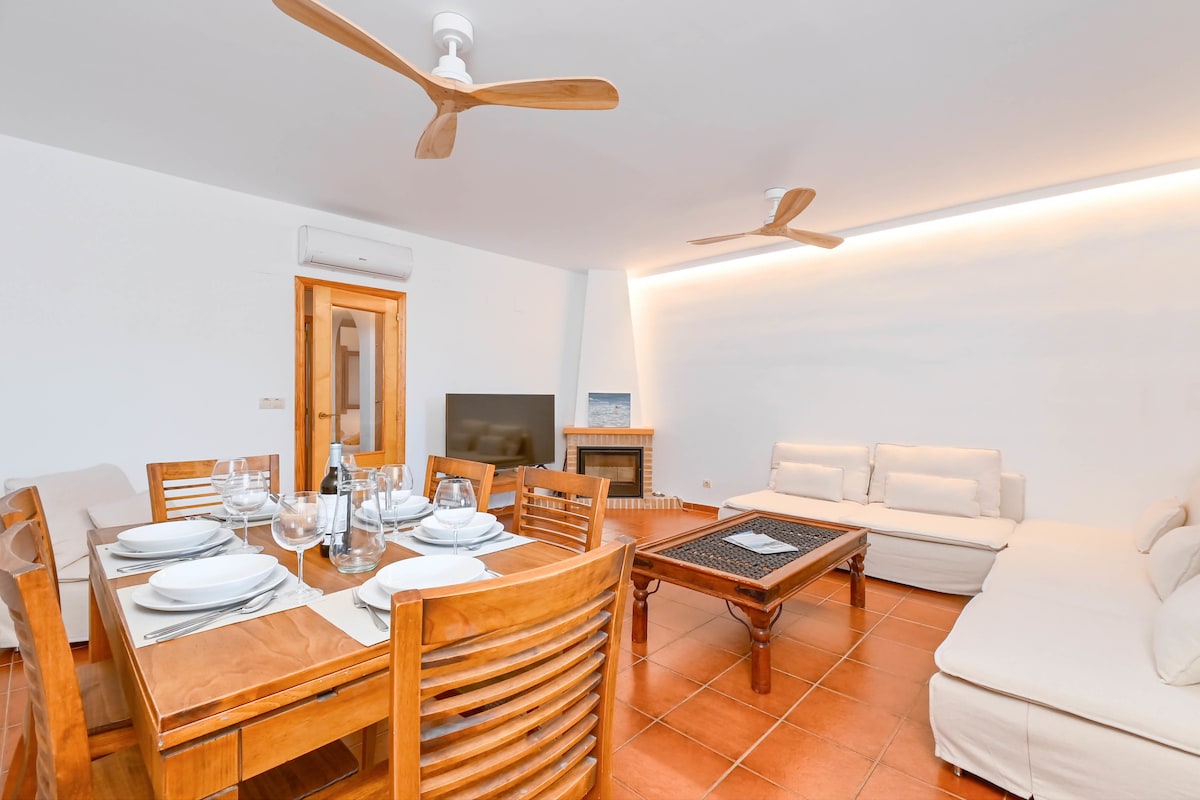 데베세스의 같은 해변에 위치한 멋진 타운하우스, 커뮤니티 수영장. 테라스 3개, 베란다 2개, 침실 4개, 욕실 2개가 있습니다. 2베드룸 테라스에서 바라보는 멋진 전망. 훌륭한 장비: 에어컨, 선풍기, 베버 가스 바베큐, 벽난로, 온풍 난방, 광섬유 인터넷 연결, 와이파이, 전용 주차장, 50인치 TV, 스마트 TV, 대형 냉장고, 식기 세척기, 세탁기 건조기, 오븐 및 전자레인지. 매우 높은 품질의 가정식 및 의류.