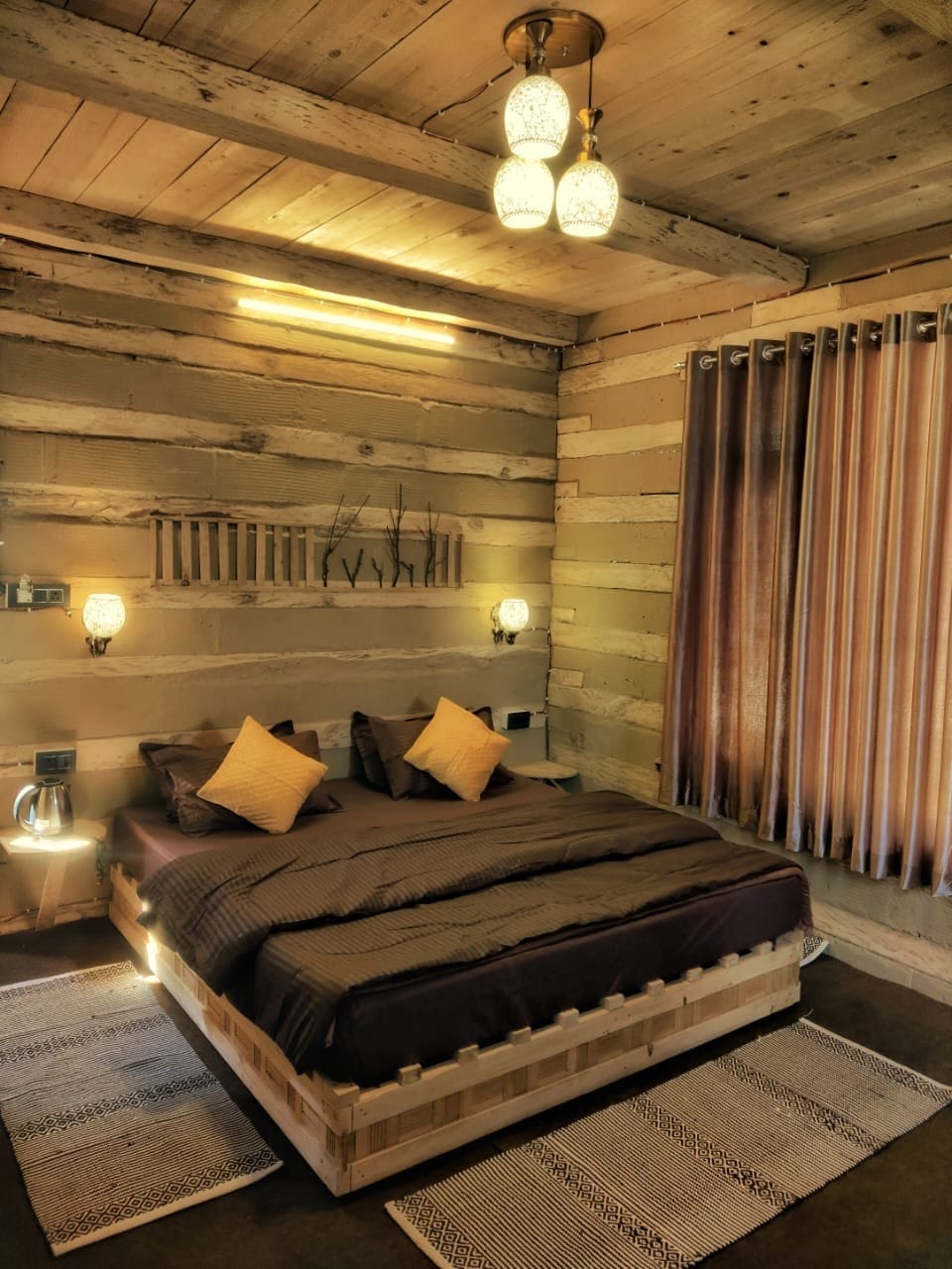 Khwaab the duplexes solves your quest of what does behind Jibhi looks like. 4 Cosy and wooden duplex rooms with attic fit for family, friends & groups. with a dedicated dining area & kitchen area and lake access at 50 mt. This is the total amount for all four rooms; single room bookings are also available. We also curate offbeat trail experiences. Happy to host you guys :)