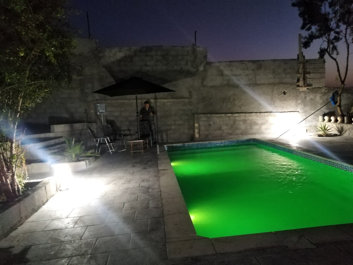 le logement est au RDC d'une villa situé en pleine campagne et proche de toute commodité. hôpital a 1km, plusieurs magasin d'alimentation générale et supérette a moins de 700m, plusieurs fastfood. la piscine est totalement sans vis a vis et privative. idéale pour un couple avec deux enfants. lit parapluie et chaise haute disponible. logement totalement équipé ,vaisselles, serviettes, linge de lit. parking fermé avec portail électrique et bip privé et gratuit.