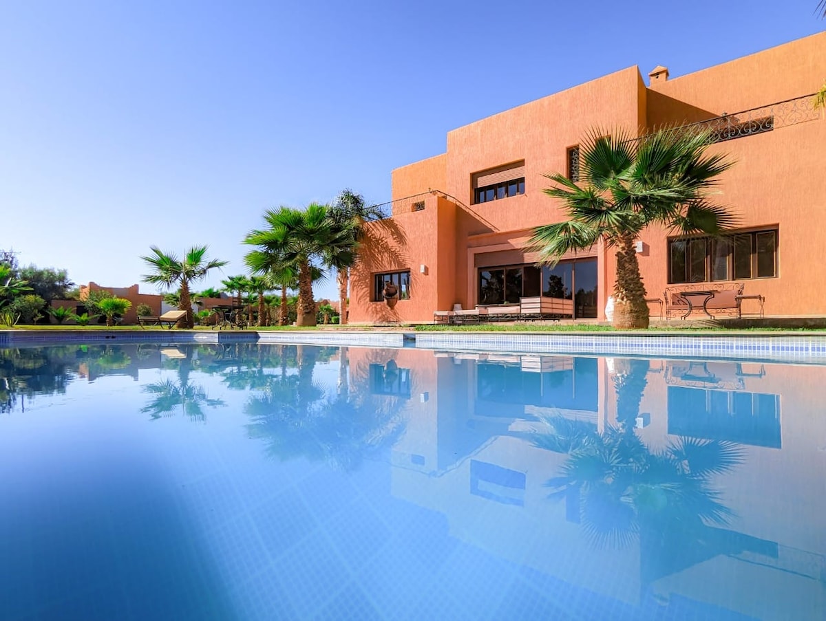 아틀라스 전망을 자랑하는 아름다운 숙소로 4개의 대형 스위트룸과 4개의 "작은" 스위트룸이 있으며, 각각 전용 욕실과 화장실이 있습니다. 빌라에는 대형 수영장과 정원이 있습니다. 요청에 따라 함맘도 이용하실 수 있습니다. 요청 시 세련된 모로코 요리 제공. (요금은 주인에게 문의해주세요).
