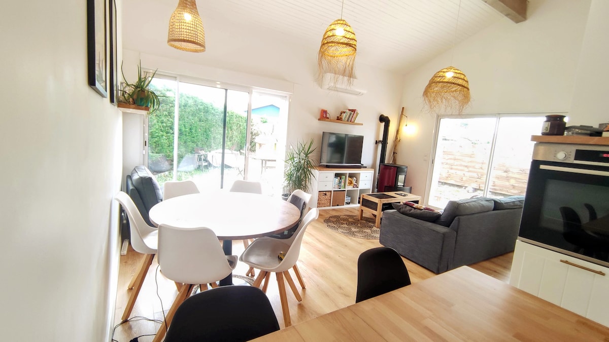 Bordรฉe par la piste cyclable, ร 1.5 km du centre ville d'Hossegor et du lac, ร 3 km de l'ocรฉan, la villa Maui est une superbe villa de standing d'environ 180 m2 avec piscine, grande terrasse en bois et jardin qui affiche un style rรฉsolument unique au milieu des pins. Exposรฉe plein sud, spacieuse, dรฉcorรฉe avec soin, elle offre tout le confort nรฉcessaire pour 8 personnes.