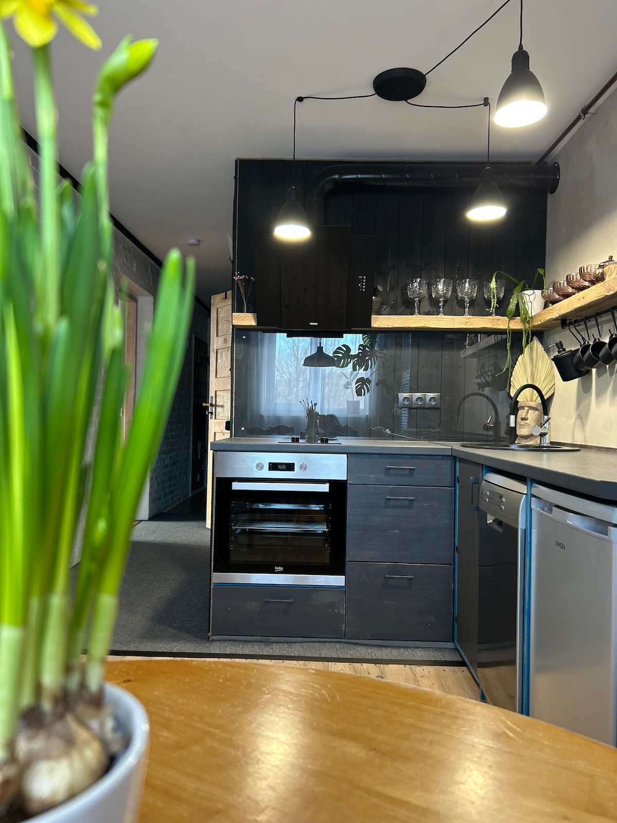 A cozy design loft in the heart of Liepāja Old Town — perfect for a relaxing seaside getaway or a romantic weekend escape. Warm evening light, exposed brick walls, and a calm, stylish atmosphere make this a place to slow down and unwind.