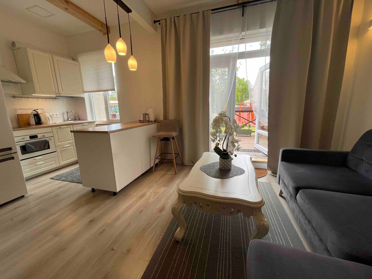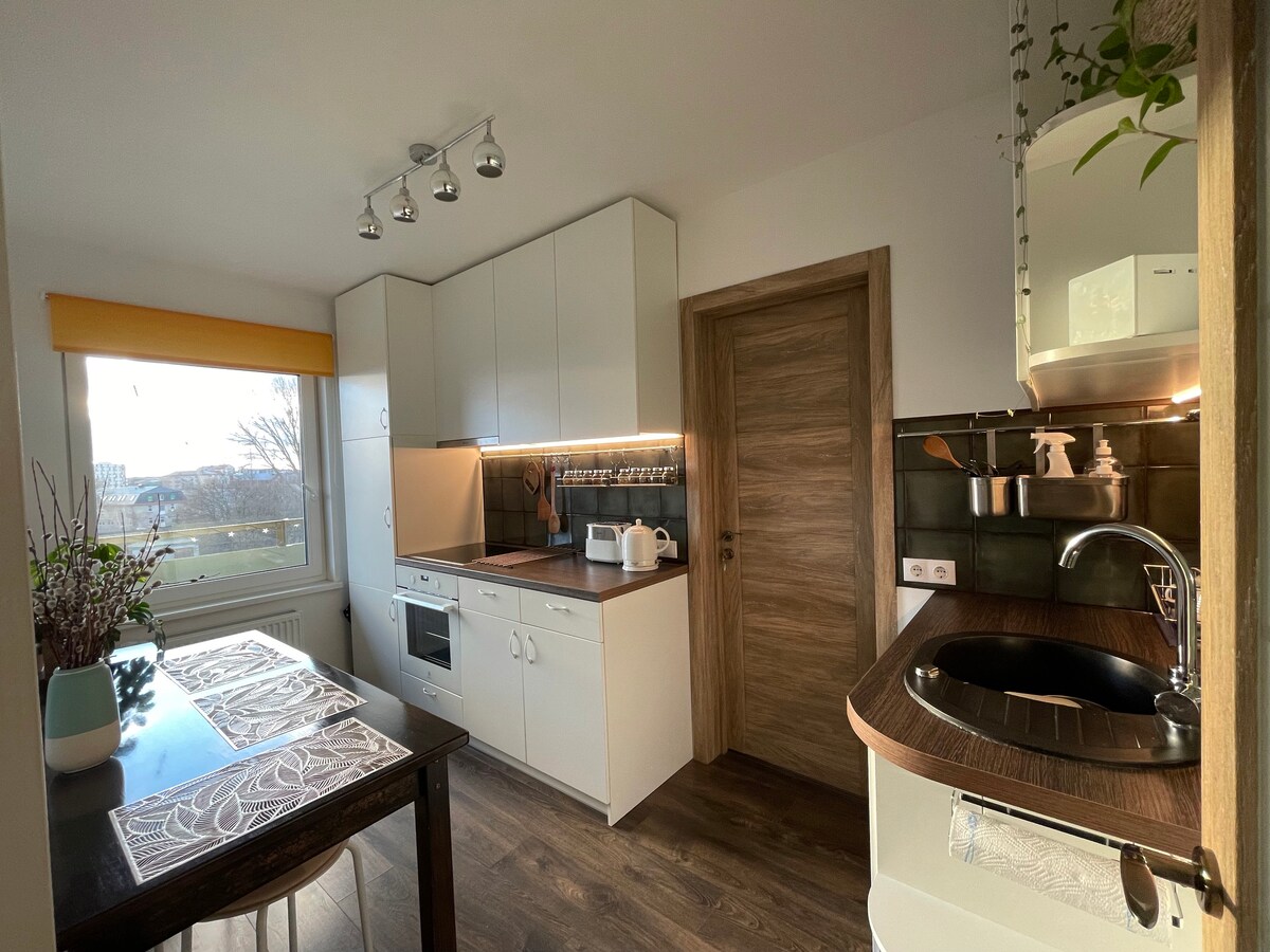Enjoy our freshly renovated modern studio apartment located near the beach (500m). Perfect if you’re looking for a quiet place but is also near the city center, the beach, restaurants and different tourist attractions such as concert halls, architecture. You’ll find everything near you-grocery store (200m), public transport (120m), comcert halls (700m). Perfect for couples, friend groups or families of 3. Experience the capital city of music and wind - Liepaja, make your reservation today!