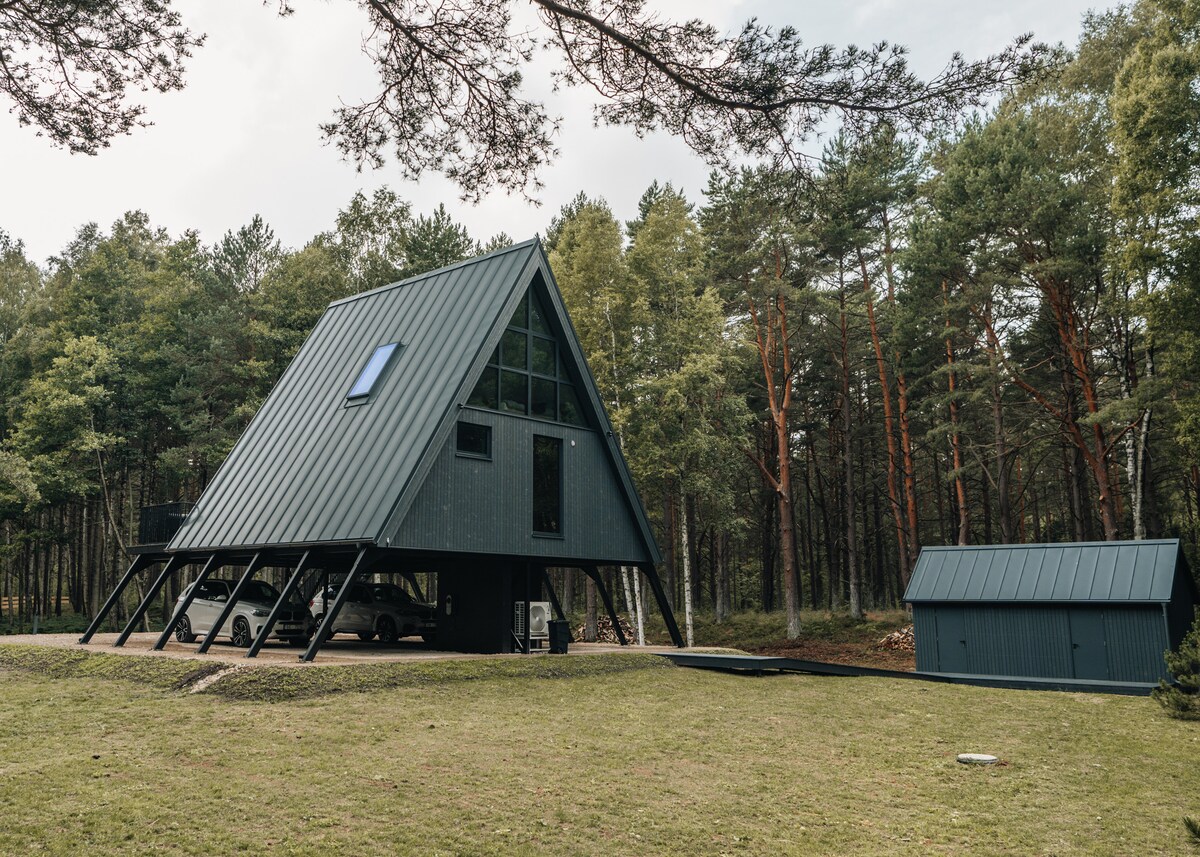 Welcome to West House, where your holidays begins 3 meters above the ground. This exceptional A-frame design house will delight you with its unique layout and a sense of home that transcends expectations. Embrace the serenity of the pine forest and experience nature's presence year-round. West House is just a 10-minute walk from the picturesque Bernāti beach. Perfect for 5+1 guests. Unwind, recharge, and create treasured memories in this extraordinary nature escape.