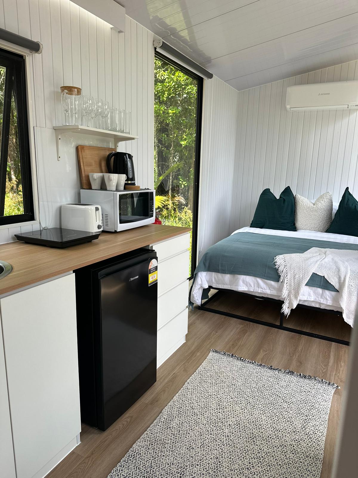 *숙소 전체를 읽어주세요* 개조한 화물 컨테이너를 개조해 독특한 숙소로 꾸민 이곳에서 편안한 휴식을 즐기세요. 털리 밸리의 멋진 전망을 자랑하는 열대우림 가장자리에 위치한 평온한 휴양지. 미션 비치까지 단 20분, 털리까지 12분 거리입니다. '편의시설'에 식기세척기가 없음을 알려드립니다. 호스트는 게스트가 숙박하는 동안 거주지를 비우고 메인 숙소에서 약 30미터 떨어진 숙소에 있습니다. 카소와리 회랑이므로 반려견은 입실할 수 없습니다.