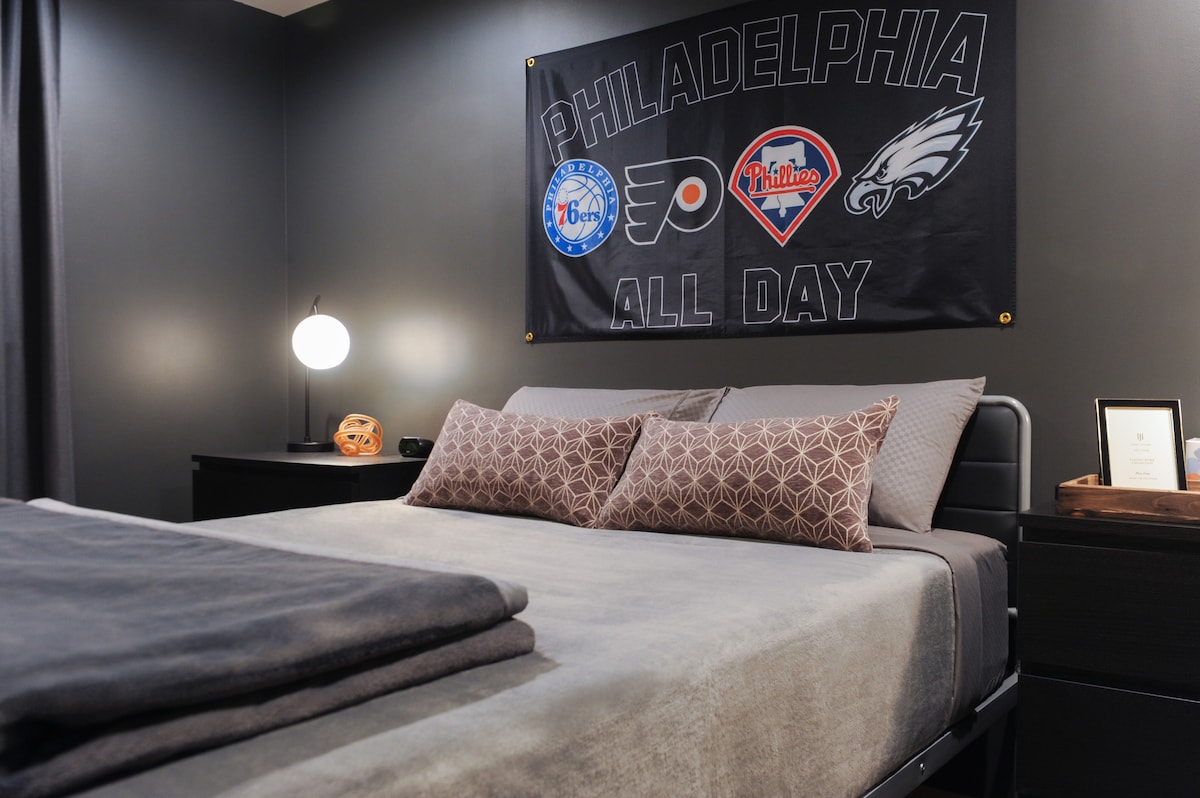 공원, 박물관, 시장, 콘서트/스포츠 장소, 관광지 등에서 도보로 이동할 수 있는 넓은 * 위치! 침실: - 50인치 스마트 TV - 킹사이즈 침대 🛏️🥱 거실: - 50인치 스마트 TV -쇼파 - 세탁기/건조기 - 에어매트리스 주방: - 조리 도구 - 풀사이즈 오븐 위치 - 위치 - 위치 - 1mi Sports complex/Stadium (Eagles, Sixers, Flyers, Phillies) * - 3mi 센터 시티/이탈리아 마켓 * - 4mi Rittenhouse Square/UPenn/Drexel U - 5미 독립기념관/미술관 -필라 공항까지 8미