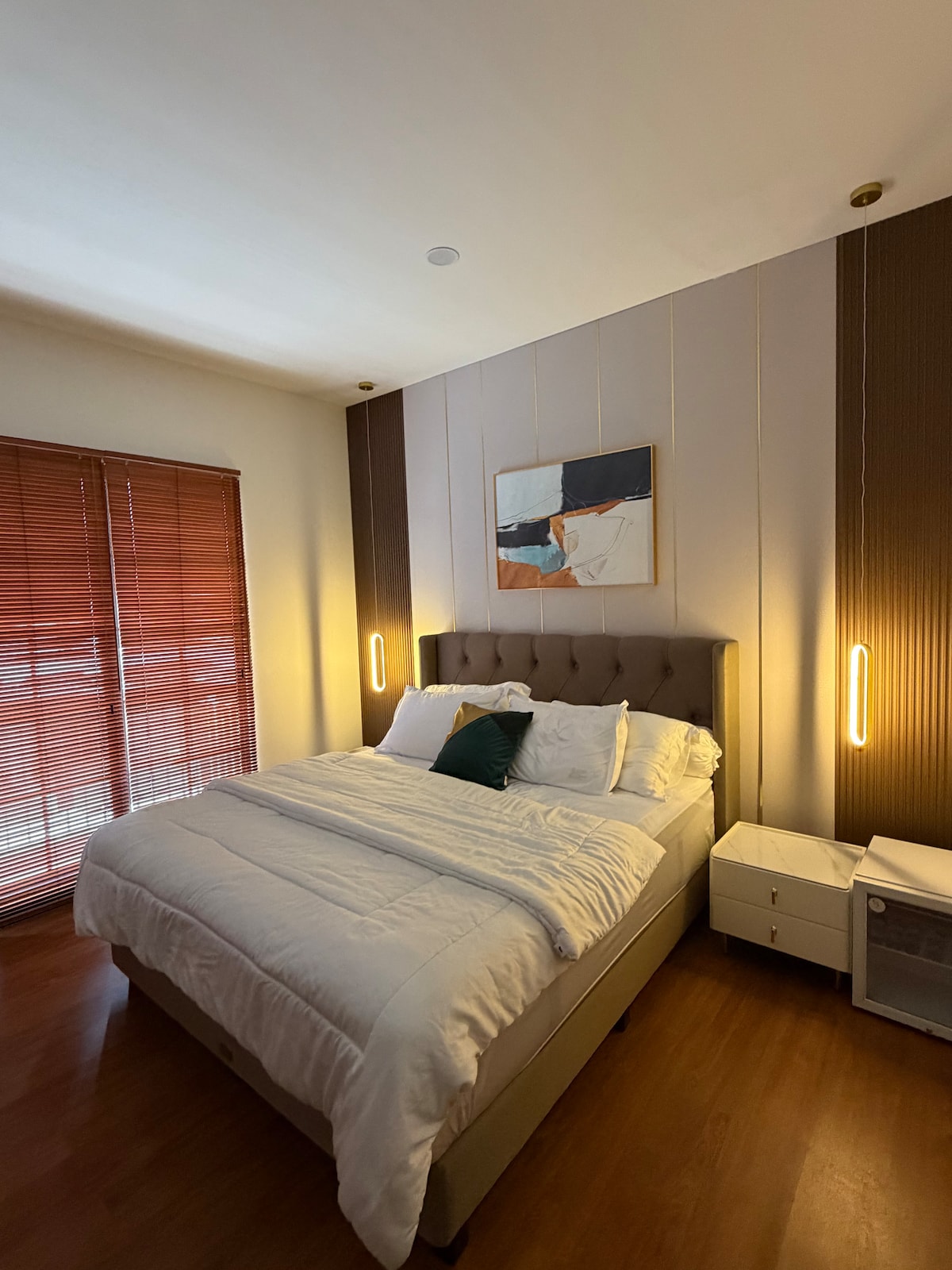 로즈빌 타워에 위치한 이 넓은 듀플렉스는 BSD에서 가장 고급스러운 아파트 중 하나입니다. 95평방미터의 숙소에는 주방, 100mbps 와이파이, 75인치 TV, 파노라마 스카이라인 전망을 감상할 수 있는 책상 등 현대적인 편의시설이 마련되어 있습니다. CBD에 위치해 있으며 레스토랑, 은행, 테라스 코타 몰까지 도보로 갈 수 있는 거리에 있으며, 더 브리즈, 아에온 몰, ICE까지 차로 몇 분 거리에 있습니다. 올림픽 규모의 수영장, 당구대가 있는 라운지, 헬스장, 미니마트, 아이 돌봄 시설, 세탁소도 이용하실 수 있습니다.