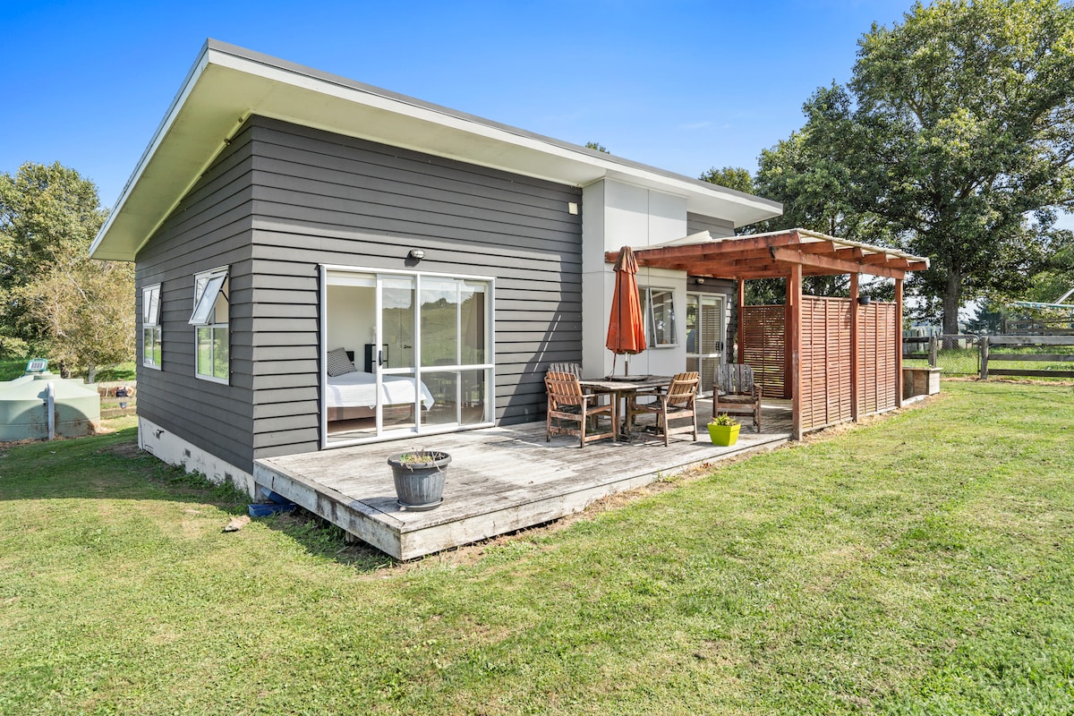 Welcome to Kiwi Mountain Escape, a small working dry stock cattle farm. During your stay you can expect to see & or hear our animals and the odd farm activity, rural living at its finest. Our cozy, studio-style retreat is designed for comfort. The space includes a queen sized bed, & a bunk set with a double on the bottom & a single on top. you'll find a full kitchen & dining area, separate bathroom & covered outdoor space with table & seating. As we have big machines on our farm, adults only.