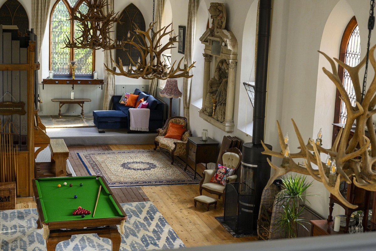If 'Grand Designs' is your benchmark, go no further. St Paul's Chapel is a step into playful luxury. You can sleep in an idyllic fairytale fourposter, in the very spot the choir used to sing. The open plan simplicity of the space is designed to work for multipurpose activities. Wether you are dining with 6, watching the cup final on the giant wall mounted TV with soundbar, or turning up the tunes with the log fire going and the lights turned low..you decide.