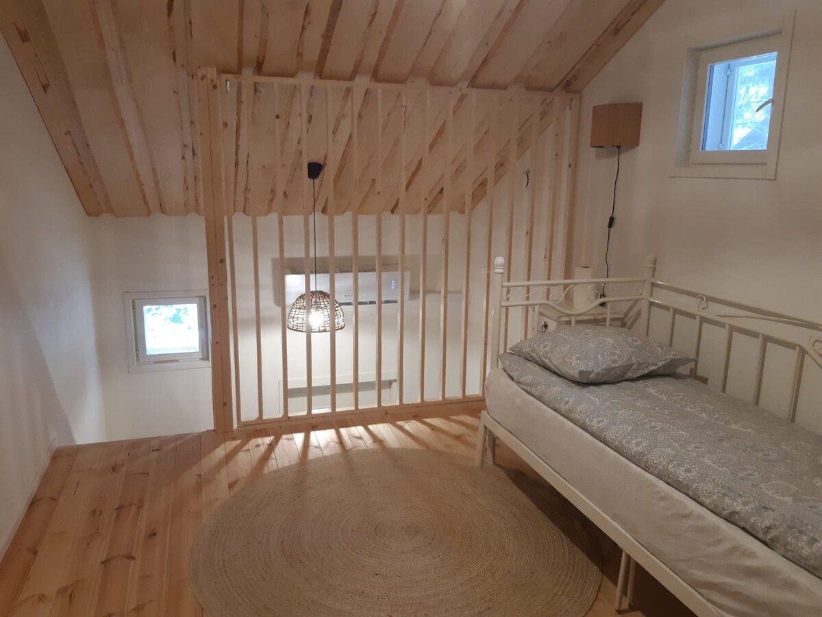 Tunnelmallinen parvimajoitus piharakennuksessa