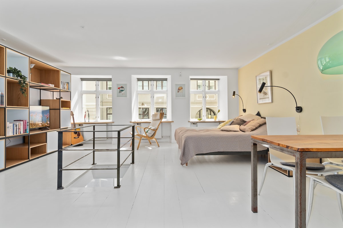 The old city center at your doorstep. Tivoli 200m, City Hall 100m, main shopping street 100m. Parliament, Royal Palace, Nyhavn, Canal boat trips - you name it - it’s all within 20 min easy walk. Rent a bike or use the metro to access all of Copenhagen within a 20 min ride. The duplex is located on the first two levels in historic 18 century town house. Come and stay for your ultimate Copenhagen "hygge" experience :-)