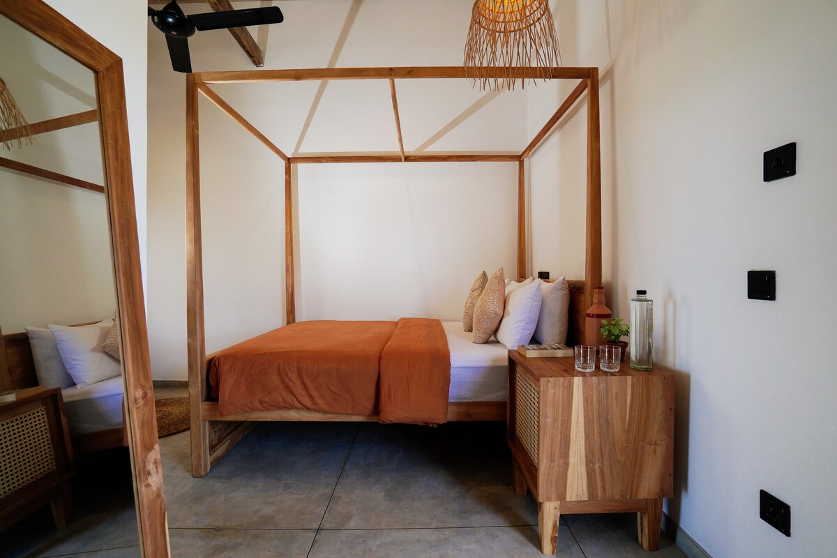 **Open-air room** Malkoha Studios provides the perfect accommodation for solo travellers in Sri Lanka, located on one of Sri Lanka's most pristine beaches. We offer 8 individual open-air studio rooms, each with its own private garden space. The rooms are situated next to Sri Lanka's newest café and restaurant, Malkoha Specialty Cafe and Bar (opening soon), which celebrates Sri Lankan coffee and offers a carefully curated food menu combining Australian café culture with Southeast Asian cuisine.