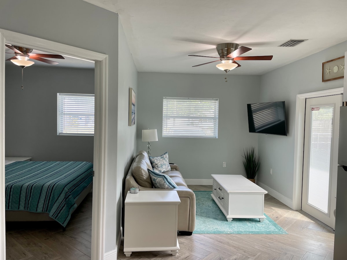 Welcome to your modern Sarasota Guest Suite – Adults Only, Private & Peaceful 🌞 Remodeled on January 26, 2026, this private suite offers a separate entrance and parking for two cars. Enjoy a cozy queen bed, full bathroom, and a kitchenette with microwave, mini‑fridge, coffee maker, and more. Relax on your private patio with a solar shower. Stay cool with a quiet mini‑split A/C. We provide beach essentials: umbrella, chairs, cooler, and towels—perfect for your Sarasota beach days 🌴