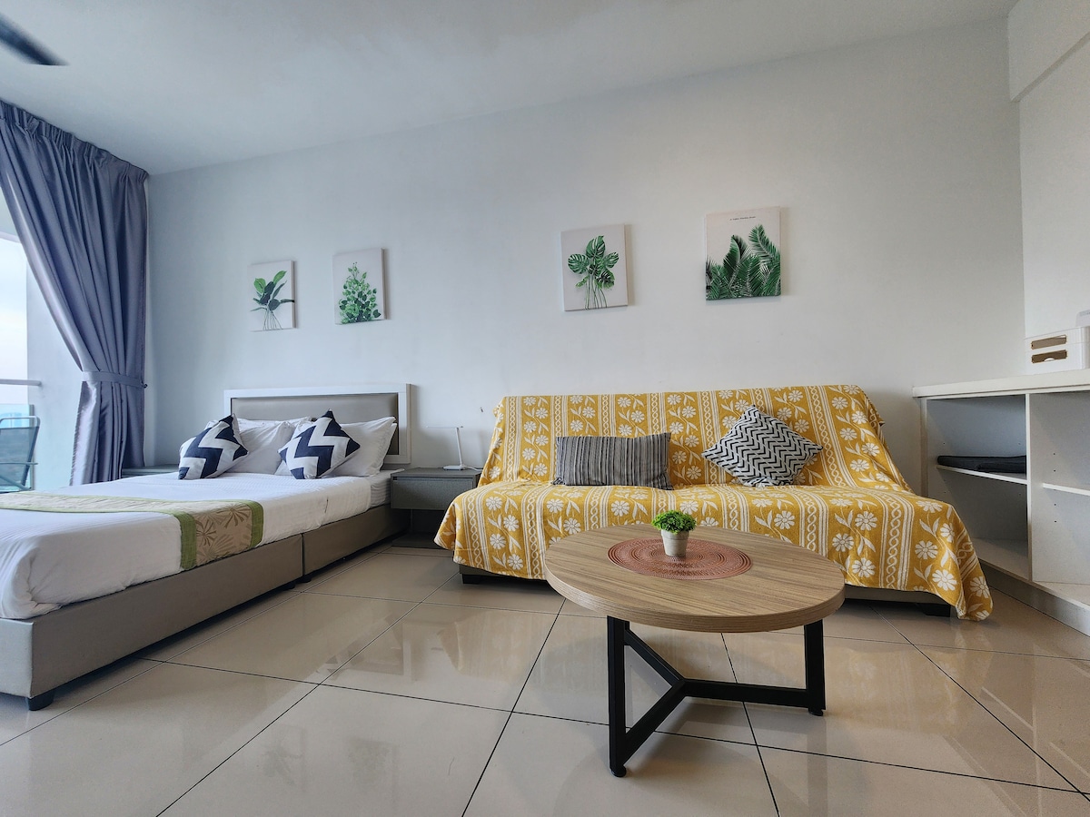Explore our cozy studio, which can accommodate 2 to 3 people with a queen bed and a sofa bed. Only a 15-minute drive from KLIA T1/T2, the place is surrounded by many restaurants, fast food branches, groceries, and laundry shops, all within walking distance. Savor all the amenities, including the kids’ playground, BBQ area, gym, and swimming pool, with 24/7 security. * Unavailable drop your luggage before check in hours.Due to building designed, need to walk 10 steps staircase to get elevator.
