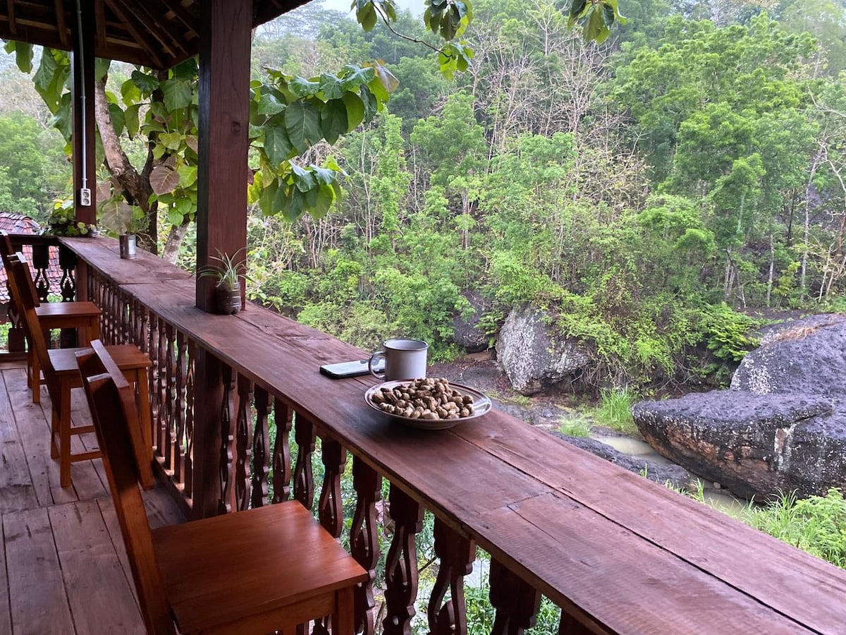 Villa Trembesi is a cozy & spacious wooden cabin in Nglanggeran Eco-Village. Surrounded by nature, it’s the kind of place where you slow down, breathe deeper, and enjoy the quiet. Wake up to birdsong, fresh air, lush views, and the gentle sound of Petung river stream. It’s chill and eco-friendly — perfect for a getaway, a quiet reset, or just escaping the city buzz. 10 mins from Nglanggeran Ancient Volcano 40 mins from Universitas Gadjah Mada 40 mins from Malioboro 1 hour from Indrayanti Beach