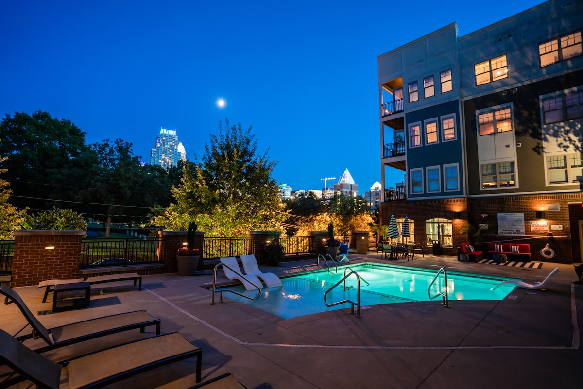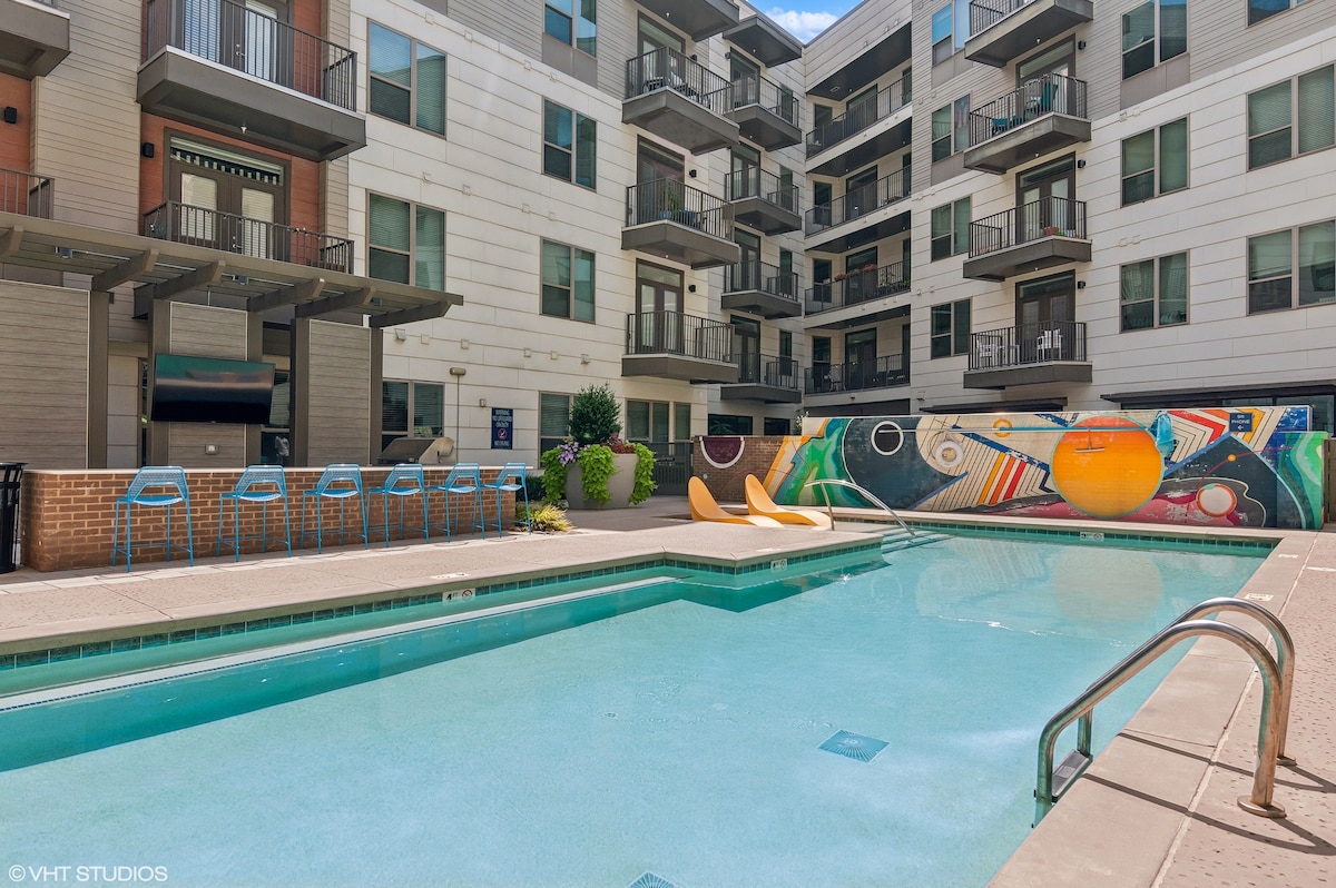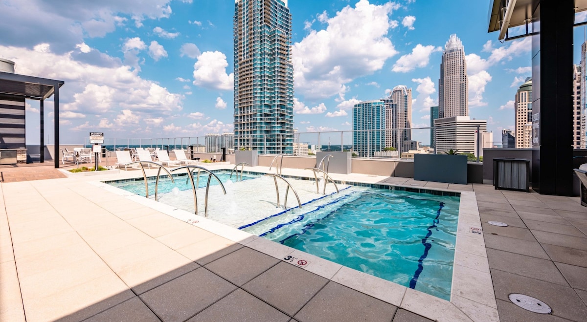 샬럿 업타운 중심가에 위치한 완벽한 숙소에 오신 것을 환영합니다! 비즈니스, 휴식, 도시 탐방 등 어떤 목적으로 오시든 보파 스타디움, 컨벤션 센터, 라이트 레일 등 모든 것에서 단 5분 거리에 있습니다. 긴장을 풀 수 있도록 무료 와인과 물을 제공하며 평화로운 휴식을 취할 수 있습니다. 헬스장에서 몸을 단련하고 수영장에 몸을 담그면 더위를 이겨낼 수 있습니다. 초고속 인터넷과 전용 업무 공간을 갖추고 있습니다. 레저와 업무 모두에 이상적입니다.