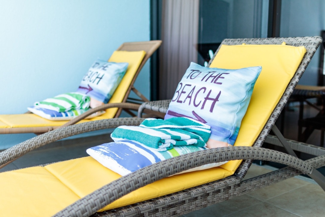 수영장과 썬 잔디밭이 있는 멋진 해변 콘도