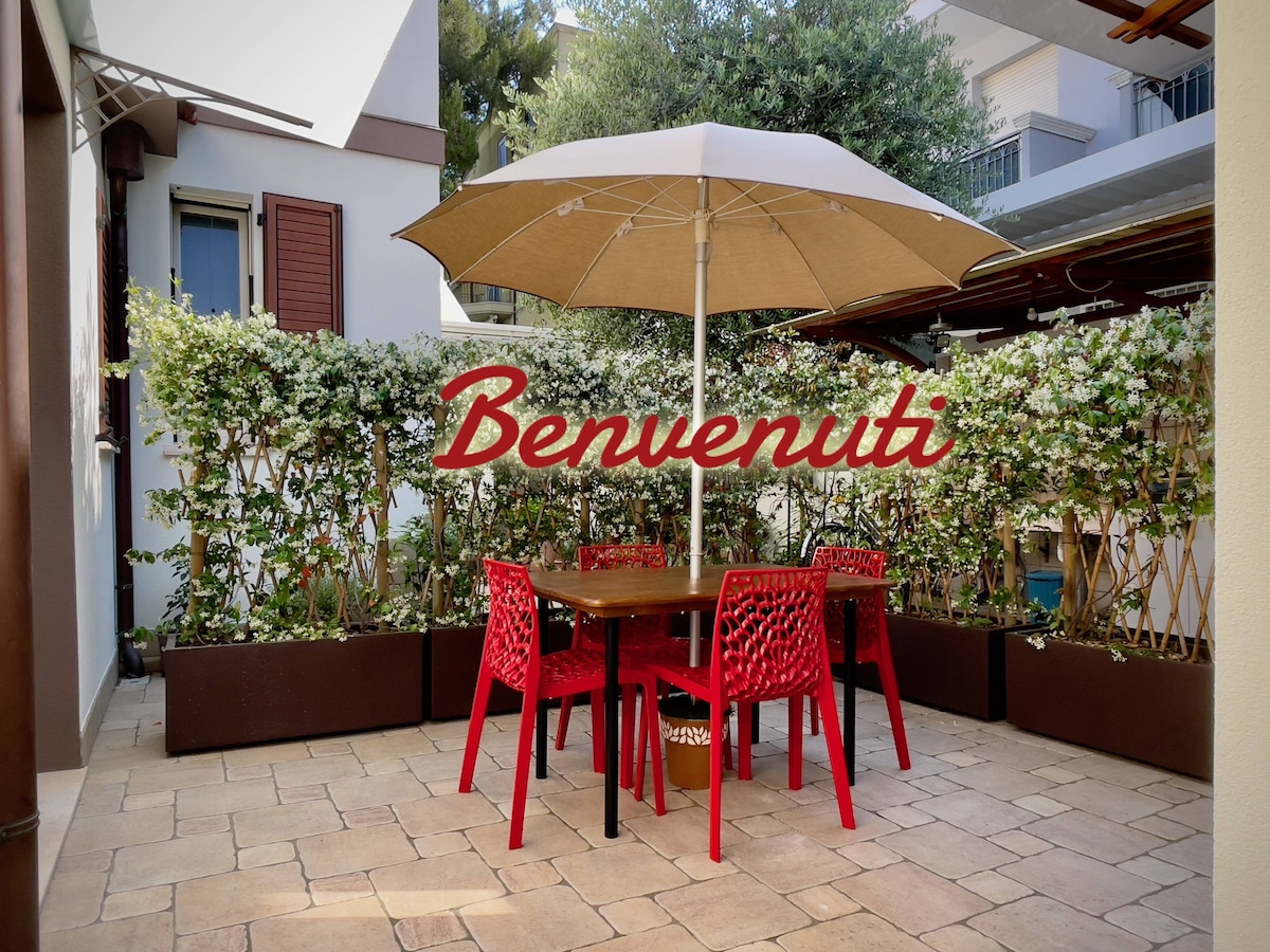 4인 가족 또는 성인 3명에게 편리한 엘리베이터가 있는 2층의 아름다운 아파트 - 해변까지 100m, - 2대의 차량을 위한 무료 주차장 및 지하 주차장 - 소형 반려동물 동반 가능 - 초고속 와이파이 - 퀸사이즈 더블 베드 1개 - 어린이 2명 또는 성인 1명을 위한 편안한 소파 베드 1개 - 유아용 침대 1개 - 유아용 식탁 의자 1개 - 주방 시설 완비 - 점심 식사와 휴식을 즐길 수 있는 넓은 테라스 2개 - 바, 빵집, 아이스크림 가게, 피아디네라(piadineria), 미니 마켓 및 게임 룸 도보 거리