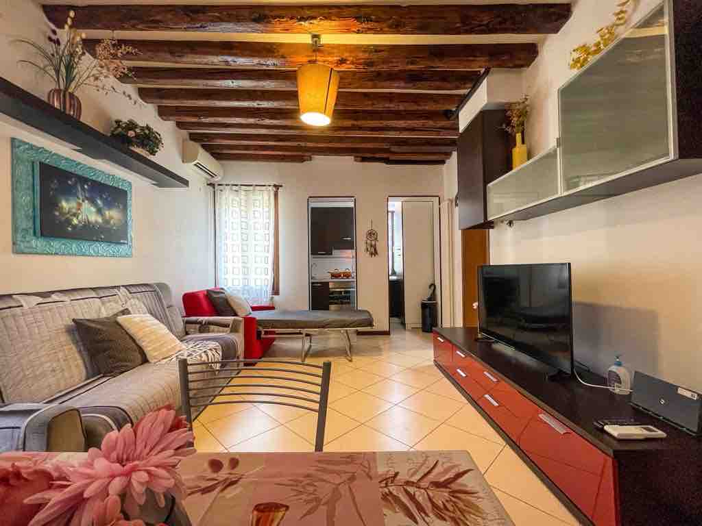 Fully renovated apartment in 2021, easy to reach and ideally located for those wishing to visit the Biennale. It features a private entrance, a fully equipped kitchen, a bathroom with shower, a bedroom, and a spacious living room with a sofa bed. It is located just a few steps from a typically Venetian commercial area, where you will find various shops mainly frequented by locals. It is the ideal starting point for exploring the city.