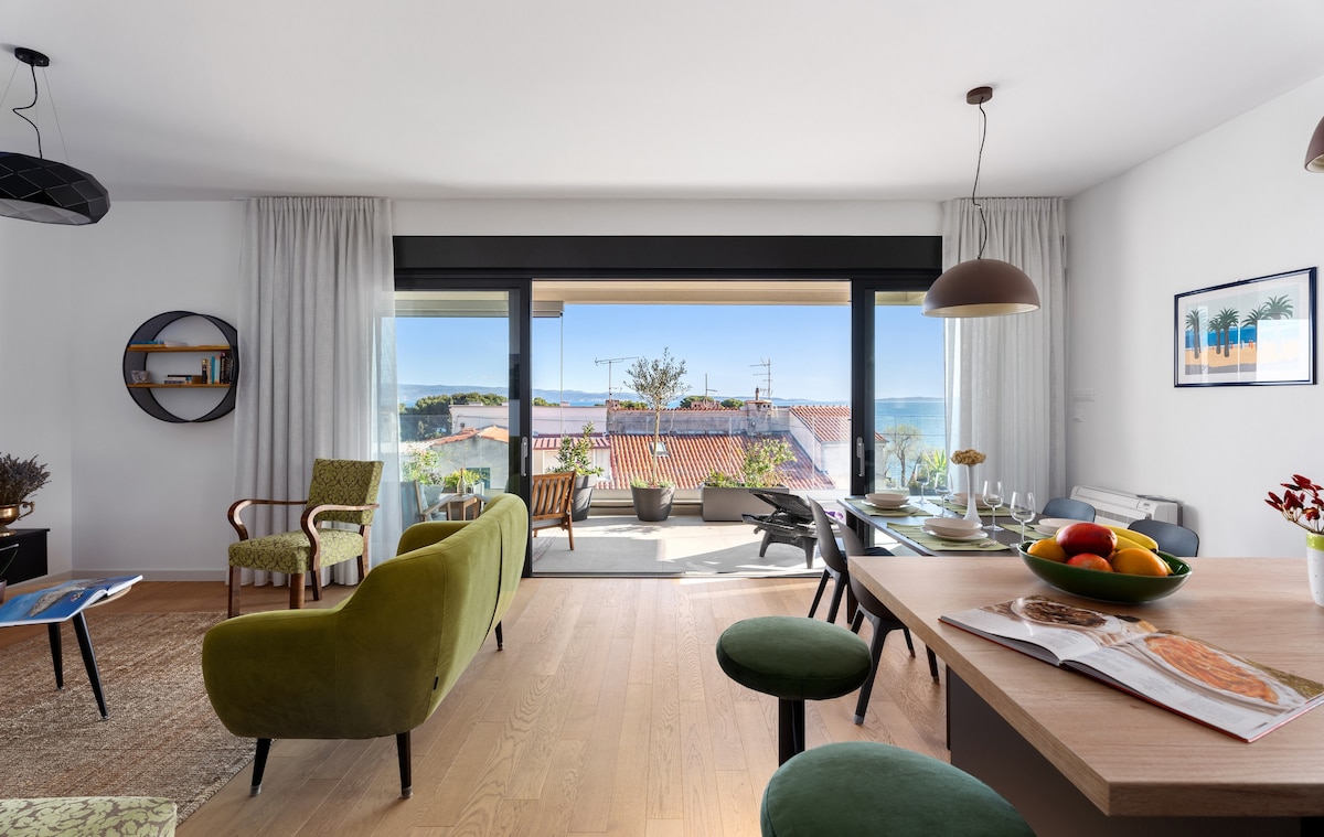 멋진 바다 전망을 즐길 수 있는 이 놀라운 세련된 해변 아파트는 자전거 타기, 걷기, 조깅과 같은 야외 활동에 매우 인기 있는 휴양지인 마르잔 힐 바로 아래에 있는 리바 산책로인 "런고메어” 의 중심에 위치하고 있습니다. 현대적인 4성급의 새로 단장한 73m2 아파트로 디오클레티안 궁전의 유네스코 현장, 식당, 바, 인근 해변 등 인기 있는 곳들을 방문하기에 매우 편리합니다.