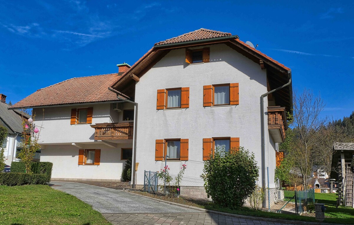 Fully equipped apartment is located in the village Spodnje Gorje. It is located on the 2nd floor (mansard). From the balcony you have a beautiful view of the castle and the lake of Bled. Free private parking. Grocery store is around the corner. 3 km to Lake Bled (reachable by car, walking ca 40 min. > back is uphill), walking distance to Vintgar gorge (ca 15 min), Pokljuka gorge and crystal clear Radovna river. We will be happy to advise you about excursions (sightseeing, hiking, biking, ...).