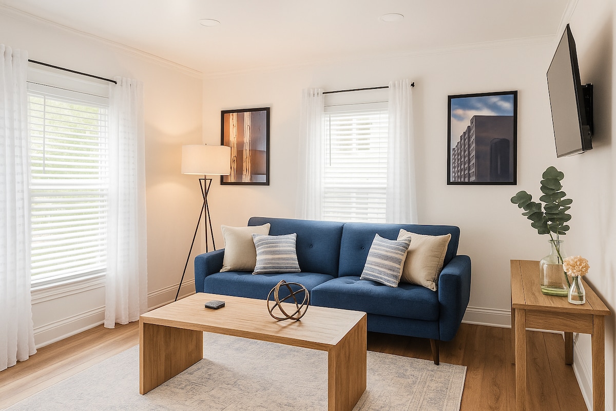 새롭게 보수된 도심 속 휴양지에 오신 것을 환영합니다! 각 집이 1900년대 초반의 이야기를 담고 있는 역사적인 동네에 자리잡고 있습니다. 전용 출입구가 있는 2층에 위치한 저희 숙소는 아침 커피 한 잔을 마시거나 저녁 와인 한 잔과 함께 휴식을 취하기에 완벽한 아늑한 데크를 갖추고 있습니다. 초고속 와이파이, 무료 구내 주차, 유연한 셀프 체크인 등 클릭 한 번으로 이상적인 숙박을 즐기실 수 있습니다. 어서 만나 뵙기를 바래요!