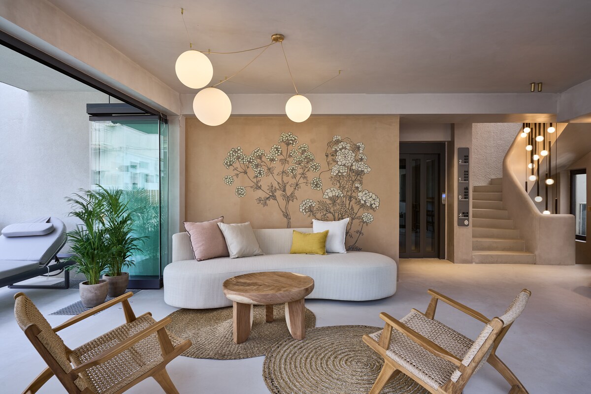 커플을 염두에 두고 만든 이 모든 스위트룸 Aegean Villa는 스키아토스 섬에 이상적인 숙박 시설입니다. 에게해 빌라 스위트의 계단을 따라 내려가면 감각이 높아지는 것을 느낄 수 있습니다. 바람 소리가 들리고, 햇살이 따뜻하게 데워지는 것을 느끼며, 바다로 지평선이 풍요로워지는 것을 관찰할 수 있습니다.