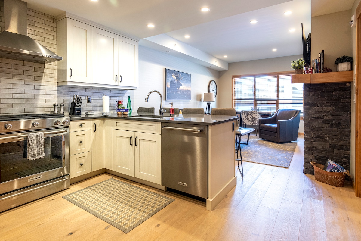 고급스러운 산악 휴양지에 오신 것을 환영합니다! 최대 4명의 게스트를 수용할 수 있는 새로운 1베드룸 킹 스위트입니다. 타운 센터에서 도보로 10분 거리에 있는 이 스위트는 킹사이즈 침대, 풀아웃 소파 베드, 욕실 1개, 완비된 현대적인 주방, 평면 TV, 세탁기/건조기, 고급스러운 침구와 수건을 갖추고 있습니다. 이 스위트에는 온수 욕조, 헬스장, 지하 주차 공간 1개가 마련되어 있습니다. 단기 임대 허가: RES-09776