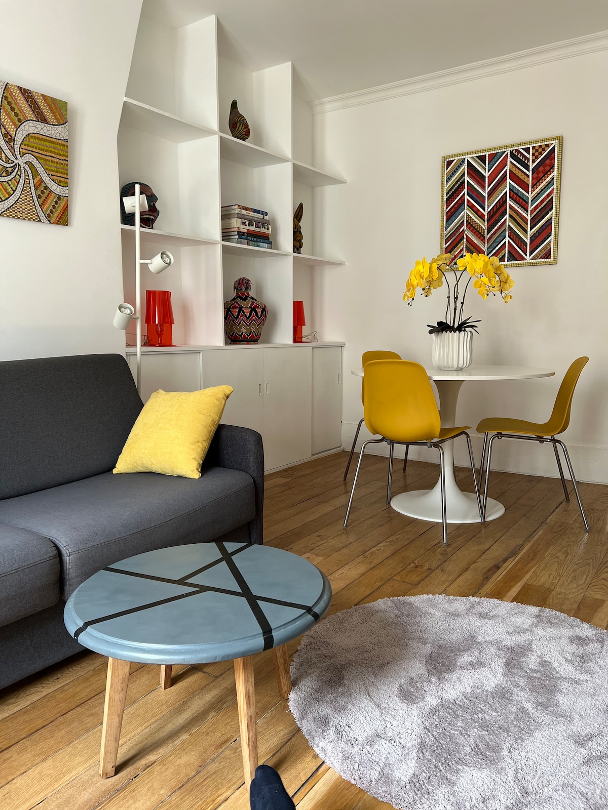 헤도니스트 파리에 오신 것을 환영합니다! - 최근 건축가가 새롭게 단장한 65m2 (예: 700평방피트) 의 훌륭하고 매력적인 아파트 - 에어컨 - 중심지: 11지구 한가운데에 위치. - 메트로 생모르 거리에서 도보로 3분 거리 - 4층에 위치한 안전하고 조용한 건물 (엘리베이터 없음) - 게스트 4명 숙박 가능 - 더블 침실 2개, 욕실 1개, 화장실 - 완비된 주방과 컨버터블 소파에 거실이 있습니다. - 고품질의 디자인 가구로 꾸며져 있습니다.