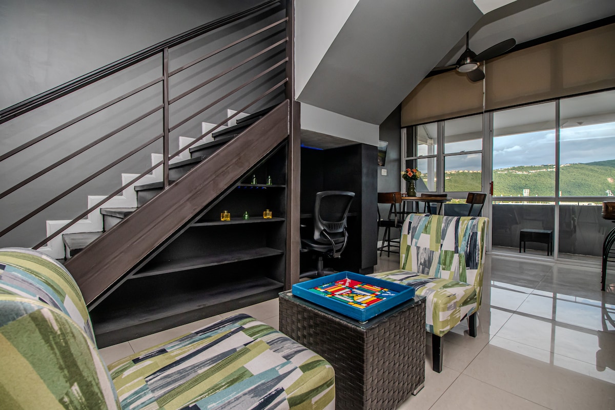 킹스턴 최고의 위치에 있는 럭셔리 펜트하우스 뉴 킹스턴, 하프웨이 트리, 다운타운 근처의 24시간 보안 게이트 단지에 위치한 1BR/2BA 펜트하우스에서 현대적인 럭셔리를 즐겨보세요. 킹사이즈 ��시, 퀸사이즈 풀아웃 소파(4인용), 초고속 와이파이, 스마트 TV, 시설이 완비된 주방, 숙소 내 세탁기를 이용하실 수 있습니다. 무료 주차장과 24시간 셀프 체크인이 가능하여 출장이나 여가에 이상적입니다. 레스토랑, 대사관, 인기 관광지에서 가깝습니다. 성인 및 만 13세 이상 어린이 모두 환영합니다. 지금 예약하세요!
