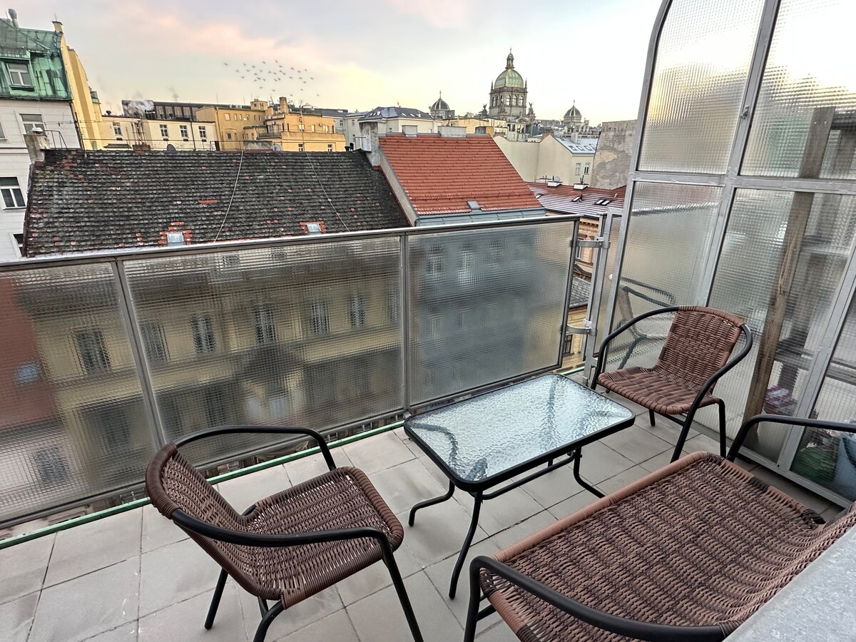 Classy unique style + balcony, next to Mala Strana