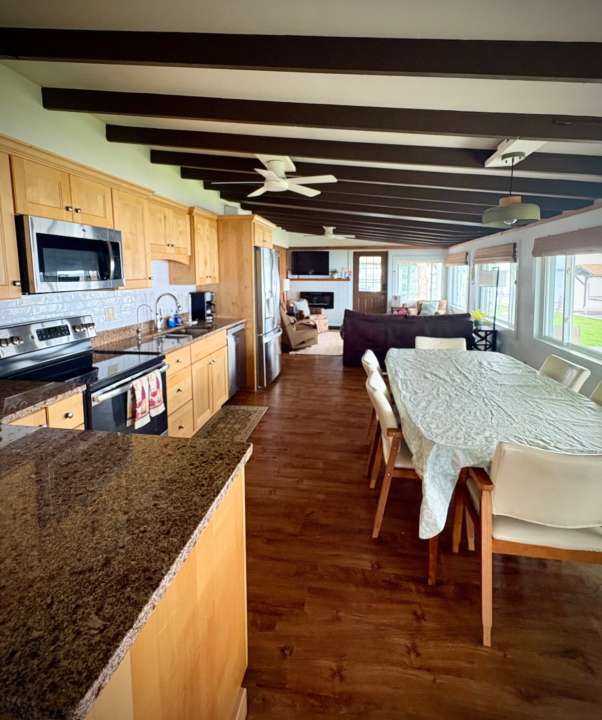 핑거 레이크 한가운데에 있는 시골 교차로에 위치한 아늑한 전원주택입니다. 와인 트레일에서 바로 나와 와이너리가 가깝습니다. 왓킨스 글렌에서 15분, 던디에서 5분 거리에 있습니다. 숙소 위층에는 침실이 2개 있으며, 각각 퀸사이즈 침대와 리클라이너가 있습니다. 아래층에는 K-Cup 커피 메이커, 전자레인지, 주방 스토브를 포함한 완비된 주방이 있습니다. 욕조와 샤워기를 갖춘 대형 욕실. 세탁기와 건조기가 있는 세탁실. 소파와 리클라이너가 있는 거실.