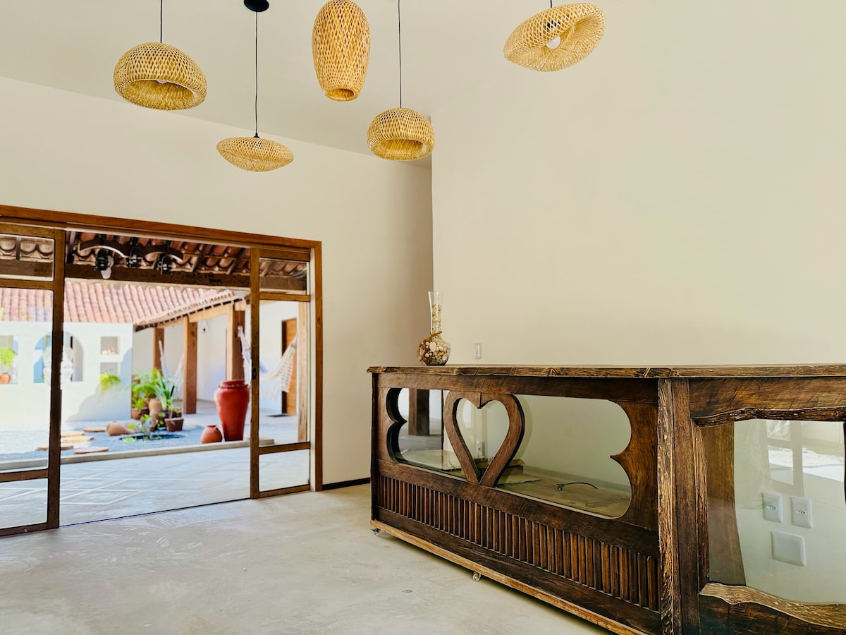 아주 사랑스럽게 지어지고 꾸며진 작은 집. 매력적이고 편안하며 아늑하며 아름다운 봄바사 해변에서 가깝습니다. 시설은 잘 갖춰진 주방, 그물, 에어컨, 천장형 선풍기, 세탁기가 있는 서비스 공간을 갖추고 있습니다. 호수와 녹지가 많은 폐쇄형 콘도미니엄에 위치하고 있어 풍부한 자연, 고요함 및 프라이버시를 제공합니다. 이곳에서는 새의 노래에 잠에서 깨어나고 언제든지 바다의 소리를 들을 수 있습니다. 휴식을 취하고 매력을 발견하고 싶은 사람들에게 안성맞춤입니다.
