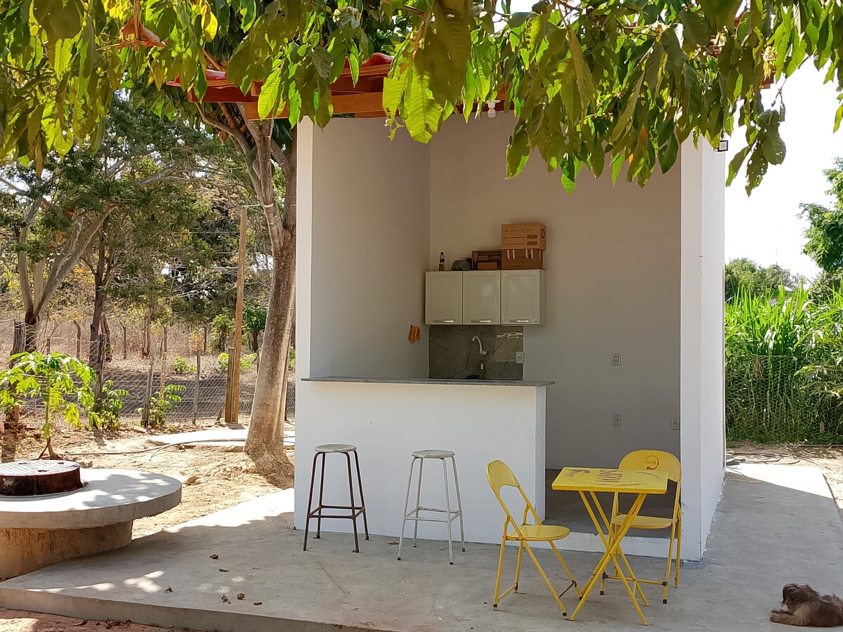 Depois de um dia cheio de trilhas, fervedouros e cachoeiras, nada melhor que recarregar num cantinho de paz. Imagina terminar o dia com uma hidro para relaxar, um jantar caseiro (agendado) e uma cama gostosa no ar condicionado. Nossa tenda é um refúgio no meio da natureza, com conforto e privacidade, perfeito para casais (de todos os amores) que procuram conexão e aventura. Perto dos fervedouros dos Buritis (1 km), Rio Sono (1,5 km), do Salto (2 km), Paraíso (2,5 km) e do Ceiça (5,5 km).
