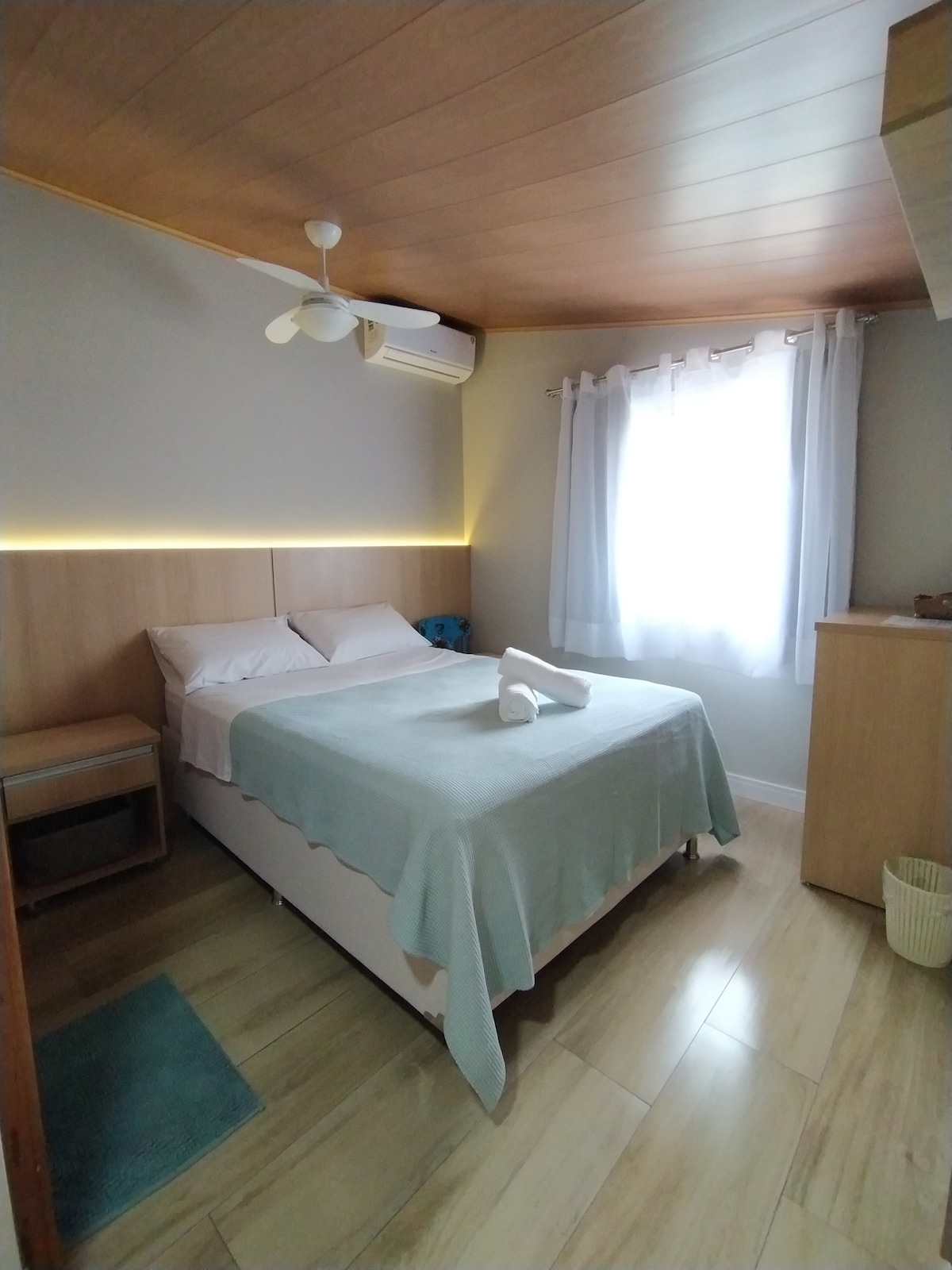 이 스위트는 퀸사이즈 침대 2개, 최근에 리모델링한 전용 욕실, 냉난방 에어컨, LED TV, 아늑한 인테리어 등이 갖춰져 있으며 이민자의 도시인 베냐 노바 도 이미그란테의 중심부에 위치해 있습니다. 주택가에 위치하고 있으며 상점가에서 가깝지만 시골의 평온함을 유지합니다. 차고 공간과 정원이 있는 뒷마당도 제공하며 베란다에서 커피나 와인을 즐길 수 있습니다. 뒷마당에는 아이들이 좋아하는 인형의 집이 있습니다.
