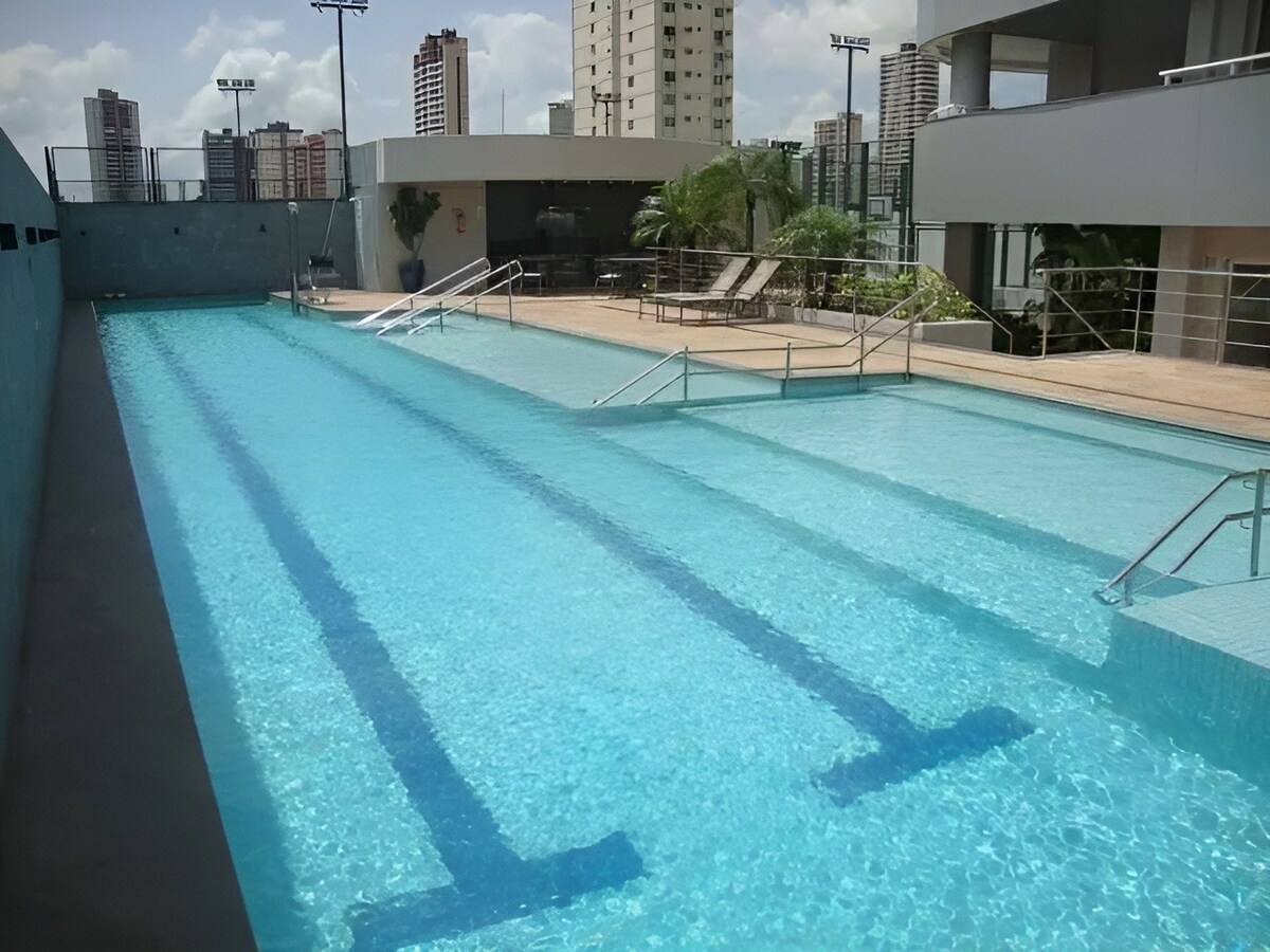커플과 여행객에게 안성맞춤인 이 현대적인 로프트는 신축 건물의 특징입니다. ✅ * * 킹사이즈 침대 * * (프리미엄 침구) ✅ * * 수영장, 헬스장, 바베큐장, 파노라마테라스 * * ✅ * * 초고속 와이파이 * * (광섬유) 및 * * 넷플릭스가 있는 스마트TV * * ✅ * * 시설이 완비된 주방 * *, 세탁기, 에어컨 ✅ * * 무료 세면도구 * * 및 필수품 제공 * * 블루 빌딩 (Rua dos Caripunas 1016) * * 의 조용한 위치 – 휴식이나 원격 근무에 이상적입니다!