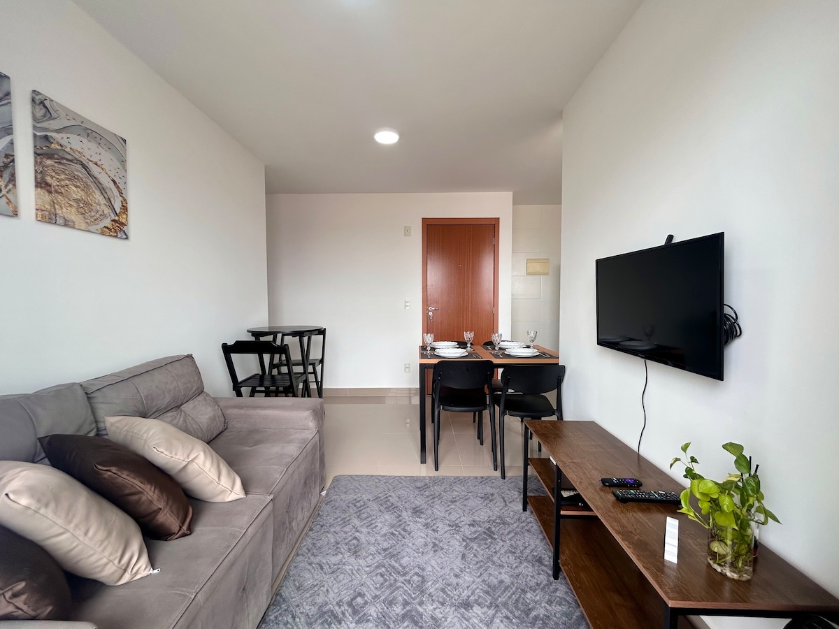 새로운 아파트, 가구, 장비와 조리 도구, 침대와 욕실 침구, 초고속 와이파이 (최대 400MB) *. 1 스위트 데 카살**c/스마트 TV 32인치 및 전기 샤워기. 비카마가 있는 싱글룸 1개 *** (성인 3명 예약 또는 요청 시 추가 요금으로 이용 가능). 둘 다 에어컨이 있습니다***. 최대 4명의 게스트를 수용할 수 있습니다. Sala Jantar/Estar with Smart TV 32 "and Social WC. 주차 공간 1개, 엘리베이터가 있는 건물, 보안 카메라, 24시간 출입구가 있는 출입문 콘도미니엄.
