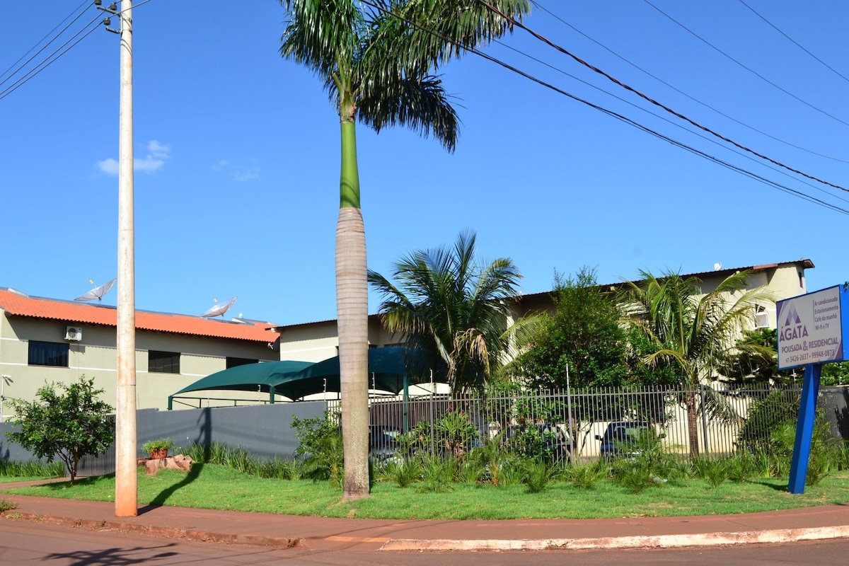 A Pousada & Residencial Ágata situa-se na Rua José Roberto Teixeira, n. 2120, no bairro Altos do Indaiá, próximo ao Hospital Universitário de Dourados e do Cerrado Brasil Eventos. Possuímos confortáveis apartamentos com ar condicionado, ventilador, internet gratuita e televisão tudo para uma estada tranquila para você e sua família. Prezamos pela limpeza de nossas acomodações, bem como das áreas públicas. Oferecemos café da manhã (exceção na pandemia), e espaço para estacionamento.