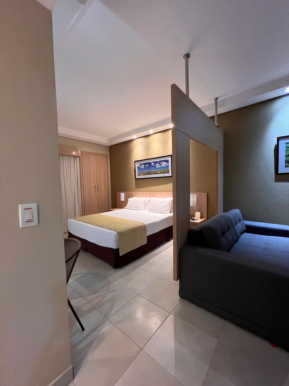 Apto novo lado do parque Thermas dos Laranjais Olímpia - SP. 이 아파트에는 소파 베드, 주방 유형 미국식, 욕실, 싱글 침대 1개와 보조 침대 1개가 있는 침실과 더블 침대, 가스 샤워기가 있는 욕실, 헤어드라이어, 수건, 와이파이, 에어컨, 지붕이 있는 주차장, 공원으로 쉽게 이동할 수 있는 넓은 거실이 있습니다. * 플랫폼에서 예약이 확정되면 가장 짧은 시간 내에 제공되어야 하는 모든 게스트의 세부 정보를 요청받게 됩니다. *