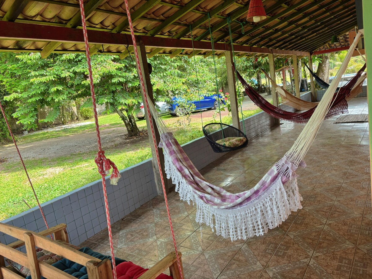 Casa Grande estilo sítio para desfrutar experiências e tranquilidade próximo a Belém. Conta com muitas praticidade e ambientes perfeitos para vc que quer ficar perto da cidade e ao meno tempo se sentir livre do trabalho e preocupações.