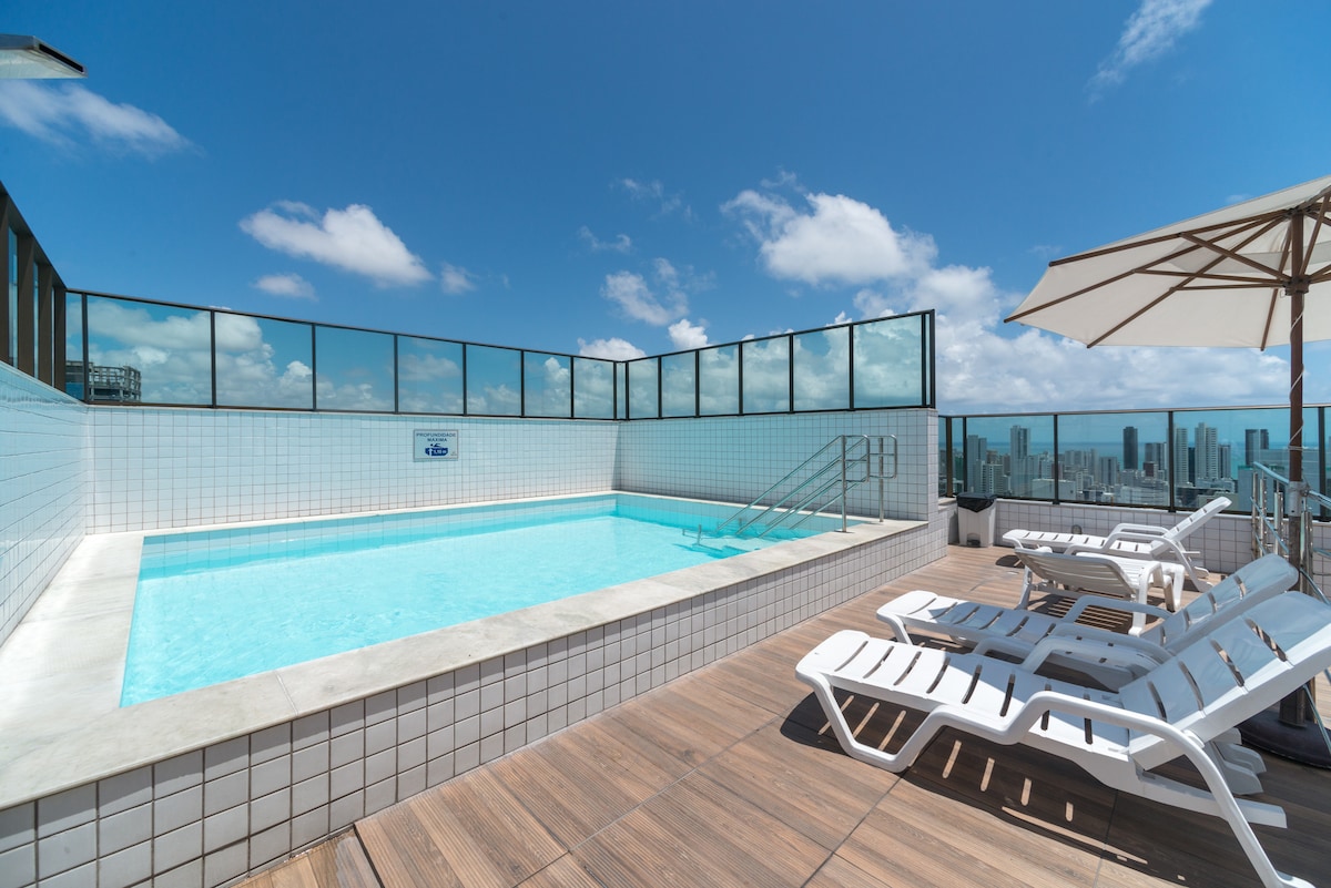 Apartamento tipo Flat/loft próximo ao mar com piscina infantil e adulto de borda infinita na cobertura. O prédio ainda conta com uma academia e equipamentos para pilates, hidromassagem, churrasqueira, salão de jogos e mais.Trata-se de um espaço super equipado e aconchegante, ideal para casal ou casal com filhos. Com toda comodidade que o bairro do bessa oferece e toda a beleza do famoso "caribessa".