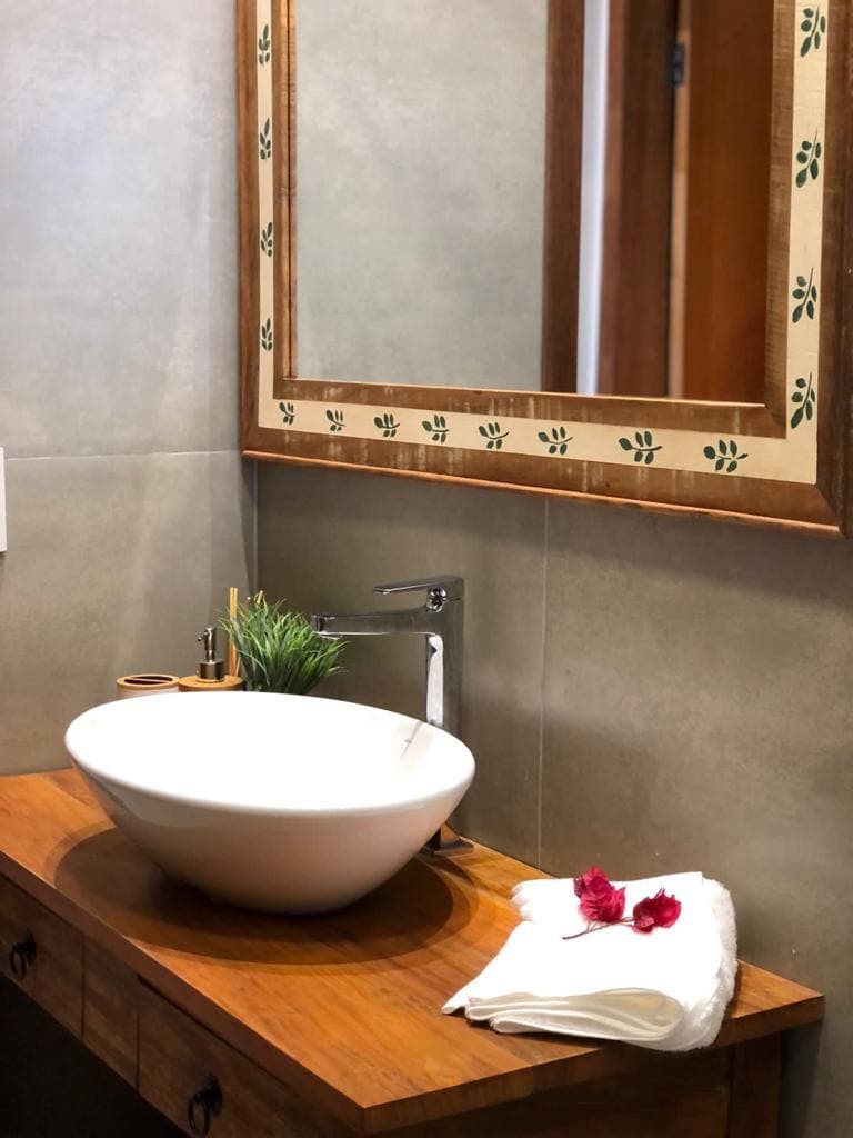 O quarto fica no Primeiro andar com TV a cabo (smart), Netflix, wi-fi, frigobar e ar-condicionado.