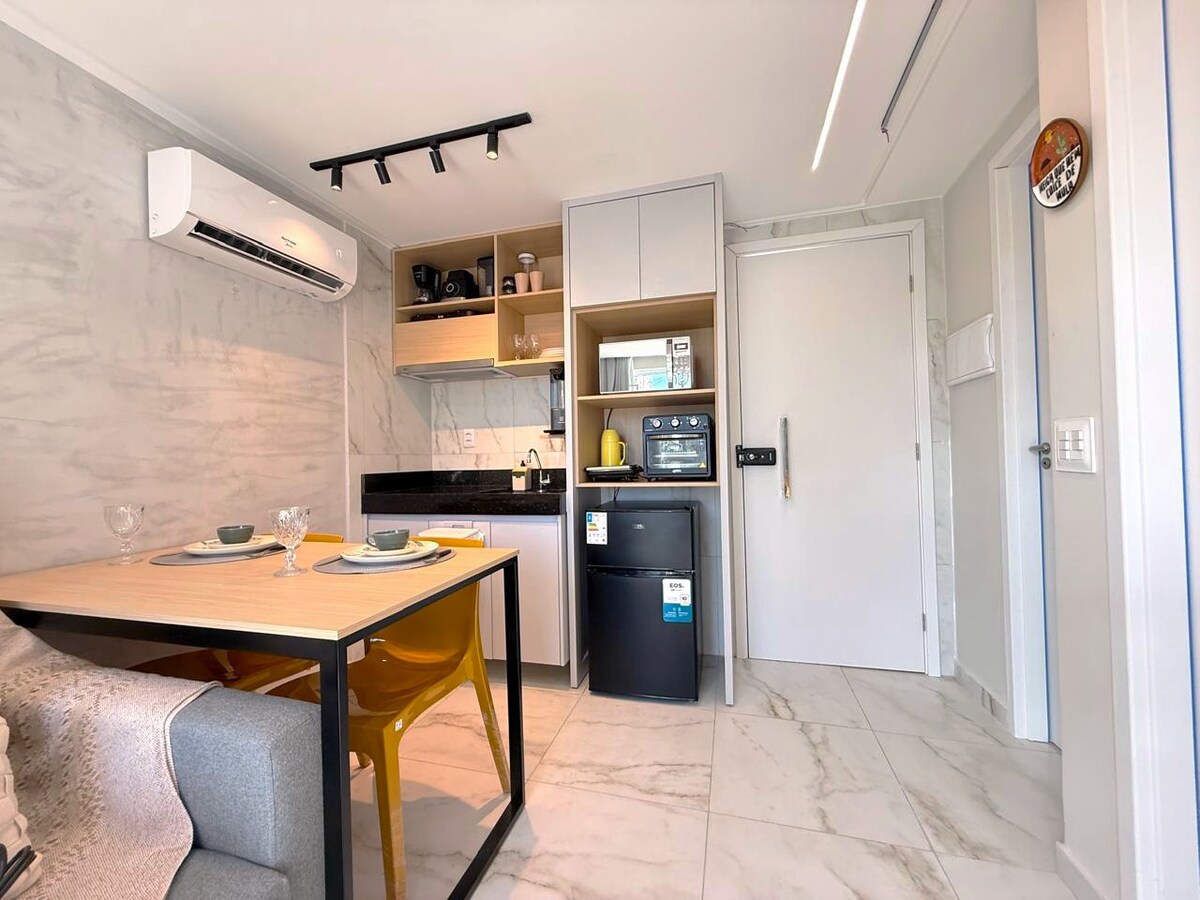 완벽한 ✨ 편안함: 패키지에 매일 청소가 포함되어 있습니다! 탐바우의 낭만적인 해변 휴양지로 놀라실💎 것입니다. 모든 디테일이 즐거움을 주기 위해 세심하게 설계되었습니다. 저희 플랫은 아늑한 킹사이즈 침대, 65인치 스마트 TV, 대형 소파 베드, 미니바, 실용적인 식기류를 갖추고 있어 노빌 스위트 자체의 가장 독점적인 스위트룸보다도 우수한 고급스러움과 편안함을 제공합니다. 우아한 공간으로, 가장 원하는 조앙 페소아의 전망을 즐기며 사랑을 위해 건배하기에 이상적입니다.