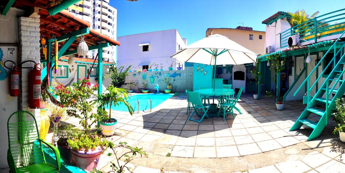 Vila Amarela는 5채의 주택이 있는 미니 콘도미니엄입니다. 모든 주택은 최대 4명까지 숙박할 수 있습니다. 침실은 2개입니다. 더블 침대 1개와 싱글 침대 2개가 있는 침실 1개가 있습니다. 주방에는 냉장고, 가스레인지, 믹서기, 샌드위치 메이커, 식사를 준비할 수 있는 모든 기구가 완비되어 있습니다. 수영장과 바베큐 공간이 있는 레저 공간은 모든 숙소와 공유됩니다. 한 개의 객실만 임대하는 B&B나 호텔과는 달리 시설이 완비된 집을 임대하고 있습니다. 피파에서 편안하게 지내세요!