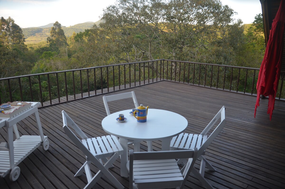 카바나 나 몬탄하(Cabana na Montanha)는 사랑하는 사람들과 즐거운 시간을 보내기에 이상적인 장소입니다. 대서양 열대우림 한가운데 5,000 평방미터의 울타리 둘러싸인 공간에 위치하고 있어 도시의 번잡함에서 벗어나 프라이버시를 누릴 수 있습니다. 반려동물을 데리고 마당에서 달리거나 주변 지역을 긴 산책을 할 수 있습니다. 오두막은 야외 바비큐를 준비하거나 낙원적인 전망을 감상하며 데크에서 아침 식사를 할 수 있도록 갖추어져 있습니다. 우리가 기다리고 있습니다. 오셔서 만나 뵙기를 바랍니다!
