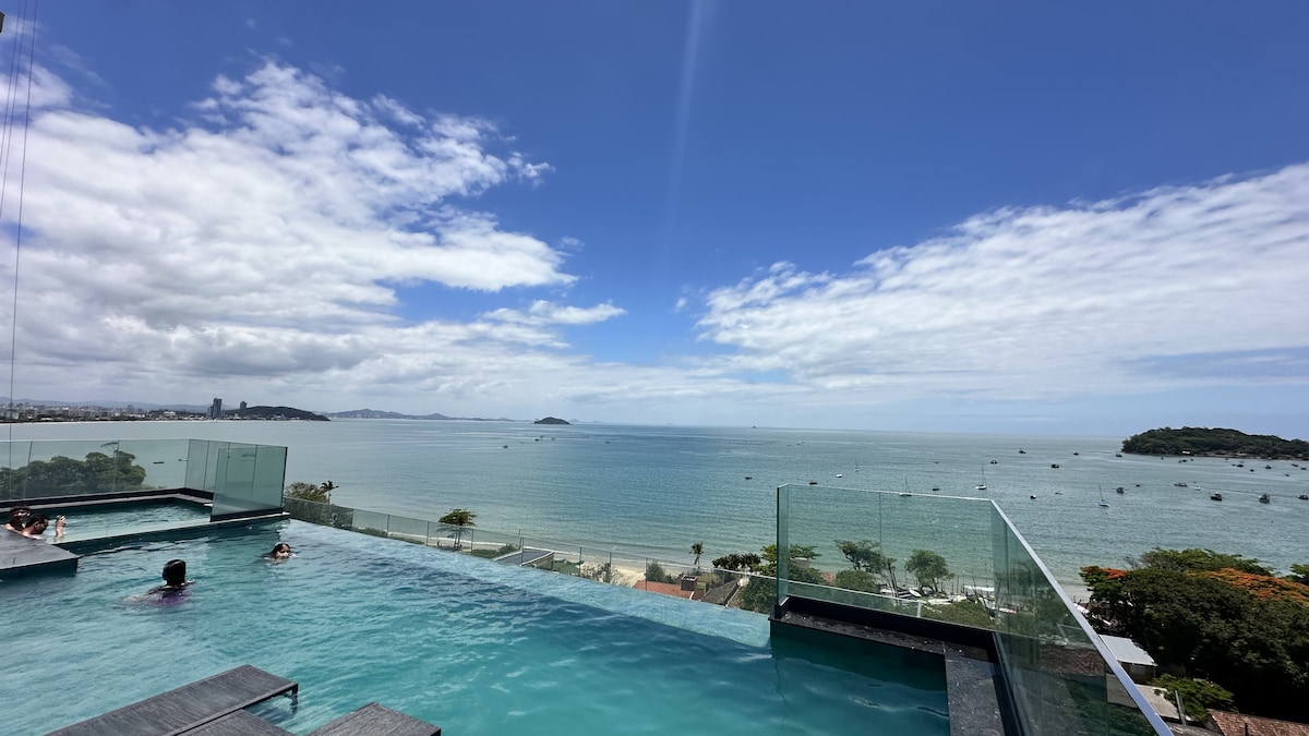 Situado em frente à praia, numa das áreas mais nobres da cidade e ao lado da roda gigante BIG WHEEL, o condomínio oferece excelente infraestrutura e área de lazer completa. Nos arredores, há diversos bares, restaurantes e opções de frutos do mar frescos, além de padarias, cafés e supermercados acessíveis a pé, facilitando o dia a dia. O prédio ainda conta com uma cafeteria e pizzaria dentro do condomínio, proporcionando mais praticidade e conforto para tornar sua estadia ainda mais agradável.