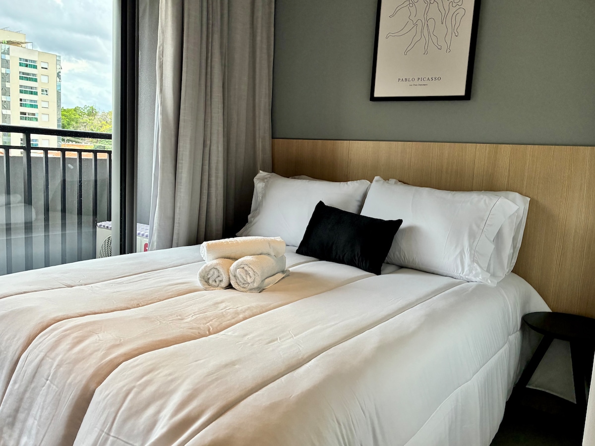 Excelente Localização Região Nobre e Descolada Situado a poucos metros da renomada R. Oscar Freire e do sofisticado CJ Shops, cercado pelo que há de melhor na cidade: os mais aclamados restaurantes, bares, farmácias, salões de beleza e parques . Desfrute de uma vista livre, com um toque de verde que traz serenidade ao seu dia. A rua é reconhecida por ser segura e tranquila, garantindo sua comodidade e paz. *WI-FI de alta velocidade e acesso a NETFLIX. •Importante: Não somos um hotel