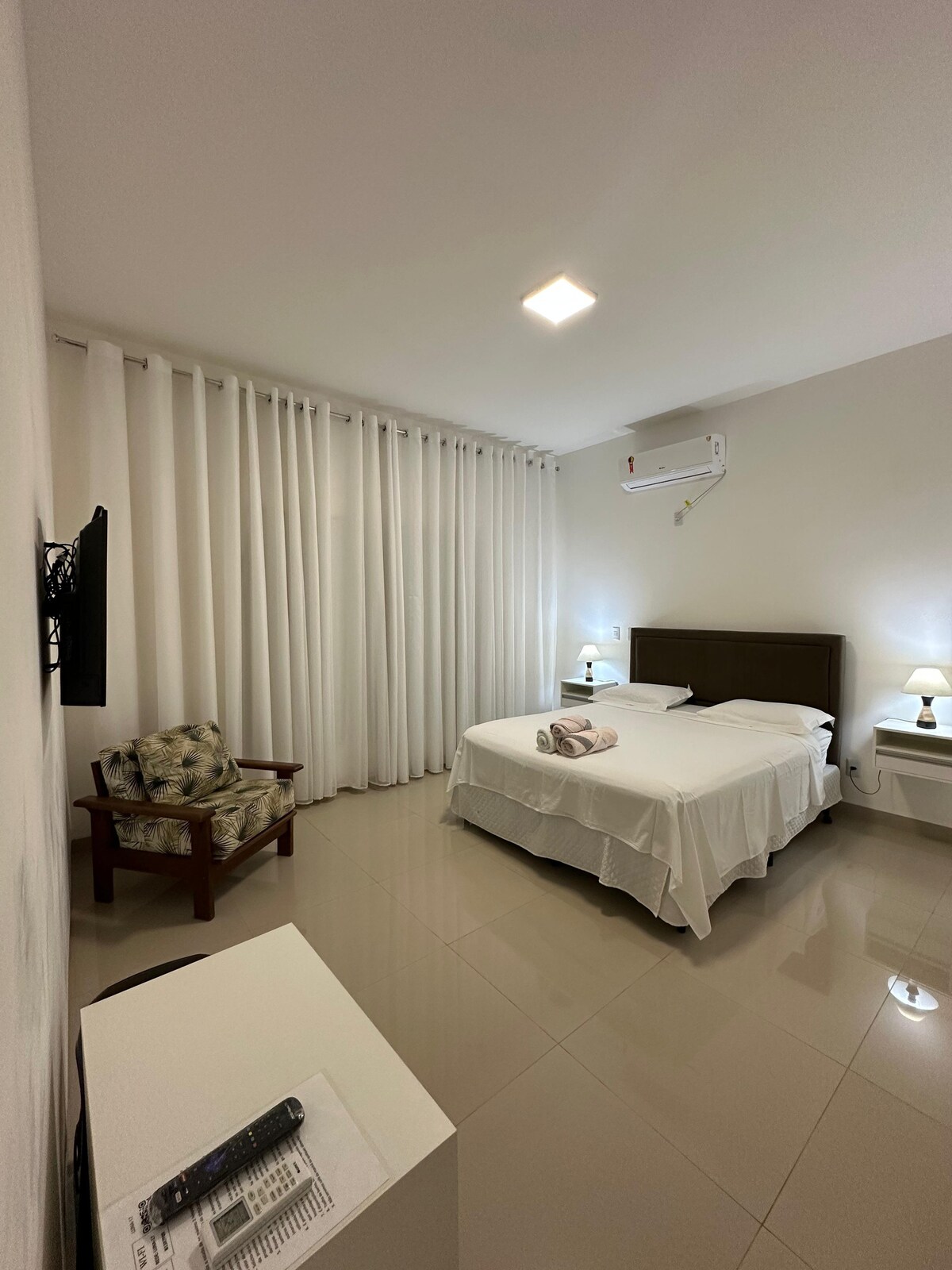 팔마스-토 (Palmas-TO) 중심가에 위치한 좋은 위치. 싱글룸, 퀸사이즈 침대, 업무/서재용 책상, 에어컨, 침구 및 목욕 수건, TV. 공용 간식을 위한 주방. 레스토랑, 슈퍼마켓, 약국, 병원, 프라이아 다 그라시오사, 황금 잔디 쇼핑, 연방 대학교, 하반 매장에 가깝습니다. .